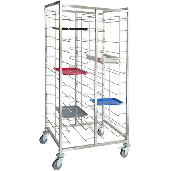 Original price was: 2115,84 €.1396,46 €Current price is: 1396,46 €. (ei sis. KM)15 līmeņu plaukts/paplāte/pannu ratiņi nerūsējošais tērauds ar 30xGN1/1 paplāšu ietilpību | Adexa RT2115