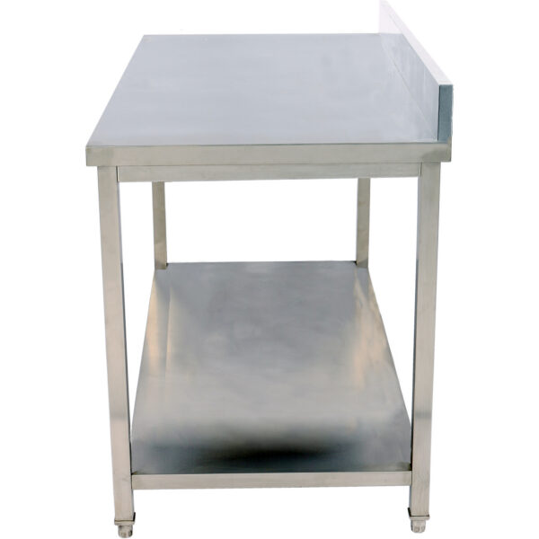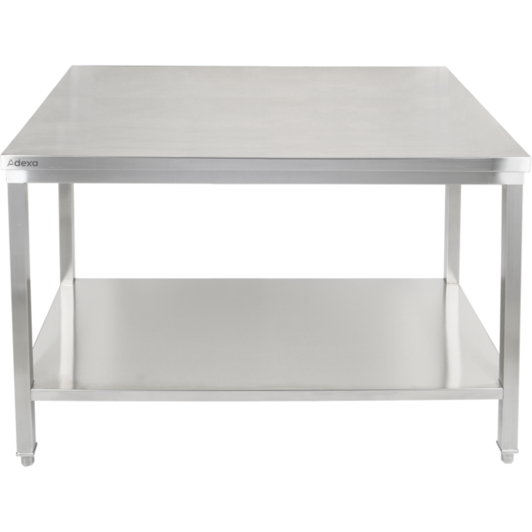 Augstākās kvalitātes komerciāls darba galds Nerūsējošais tērauds Apakšējās plaukts Aizmugures maliņa Kvadrātveida kājas 800x700x850mm | Adexa HWT80704