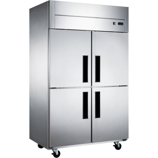 B KATEGORIJAS Komerciālais Saldētājs Nerūsējošā Tērauda Vertikālais Skapis ar 2 Dalītām Durvīm 1200 Litri Ventilatora Dzesēšana | Adexa D10DF B GRADE