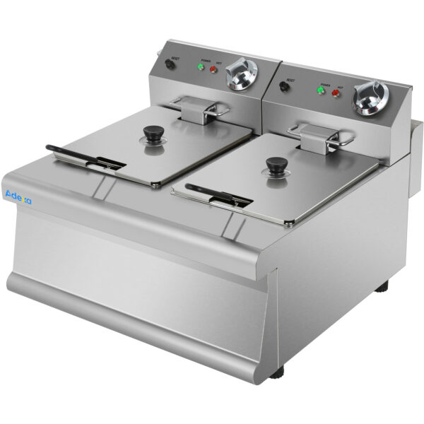 Original price was: 1645,64 €.1184,86 €Current price is: 1184,86 €. (ei sis. KM)Komerciālais Elektriskais Dubultais Frīts 2×8 litru 5.6kW Uzgalda | Adexa HEF89