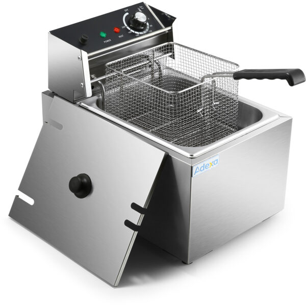 Original price was: 189,80 €.93,00 €Current price is: 93,00 €. (ei sis. KM)Komerciālais fritēšanas aparāts, vienpārejas, elektriskais, 10 litri, 2.8kW galda virsmai | Adexa HEF88