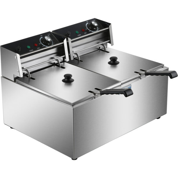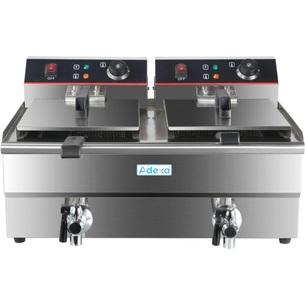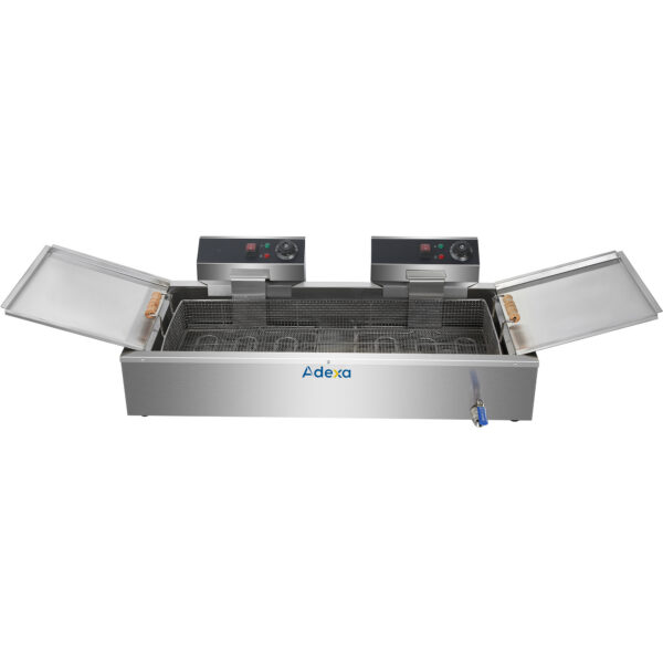 Original price was: 571,61 €.211,50 €Current price is: 211,50 €. (ei sis. KM)Komerciālais dubultais elektriskais fritēšanas katls 2×16 litri 10kW ar drenāžas krānu | Adexa HEF162V