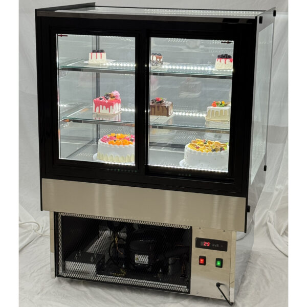 Original price was: 1226,52 €.846,30 €Current price is: 846,30 €. (ei sis. KM)Komerciālais kūku skaitītājs Taisnas priekšpusē 2 plaukti 900x700x1200mm Nerūsējošais tērauds un melns | Adexa HL900B2
