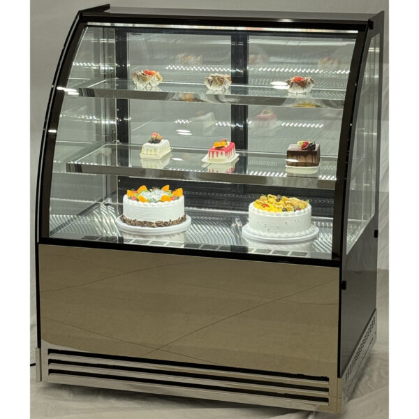 Original price was: 1339,11 €.1057,90 €Current price is: 1057,90 €. (ei sis. KM)Komerciālais kūku skaitītājs ar noapaļotu priekšpusi, 2 plaukti, 1200x700x1200mm, nerūsējošais tērauds un melns | Adexa HL1200S2