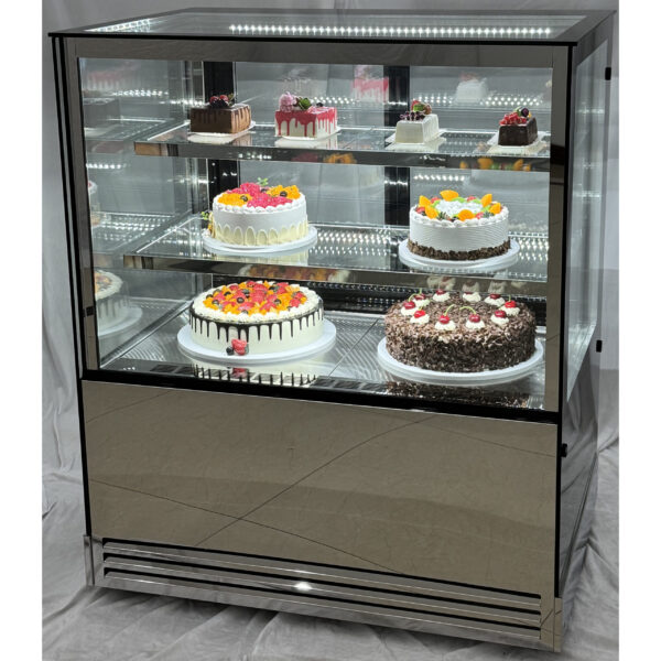 Original price was: 1889,11 €.1057,90 €Current price is: 1057,90 €. (ei sis. KM)Komerciālais kūku lete taisnu priekšējo daļu 2 plaukti 1200x700x1200mm Nerūsējošs tērauds un Melns | Adexa HL1200B2
