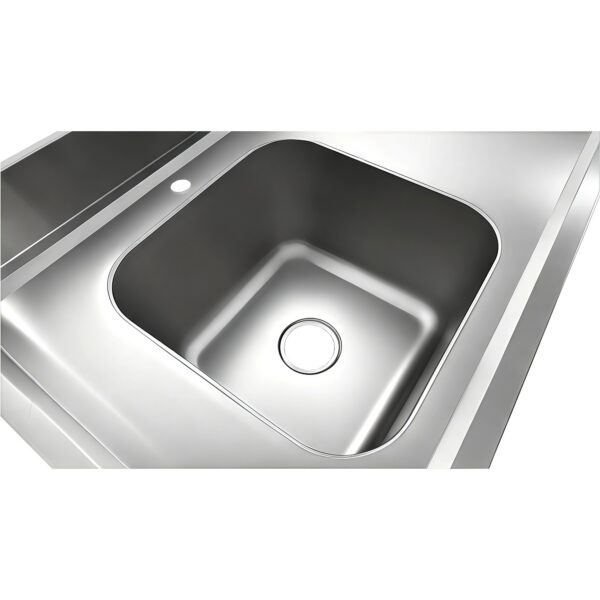 Original price was: 362,59 €.253,82 €Current price is: 253,82 €. (ei sis. KM)Komerciālais izlietne Nerūsējošs tērauds 1500x700x900mm 1 bļoda pa labi 1 atvilktne Aizmugures panelis | Adexa DSA150701DR