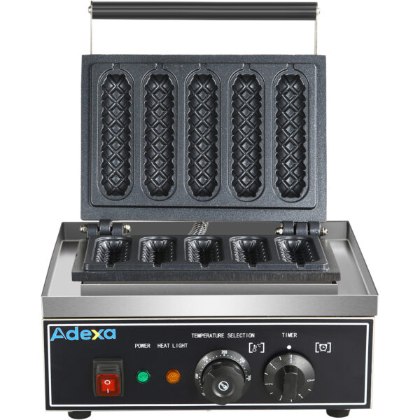 Original price was: 1855,96 €.1057,90 €Current price is: 1057,90 €. (ei sis. KM)Komerciālais Kukurūzas Suņu Vafeļu Cepējs 1.55kW 5 vafeles Galda virsma | Adexa HX117