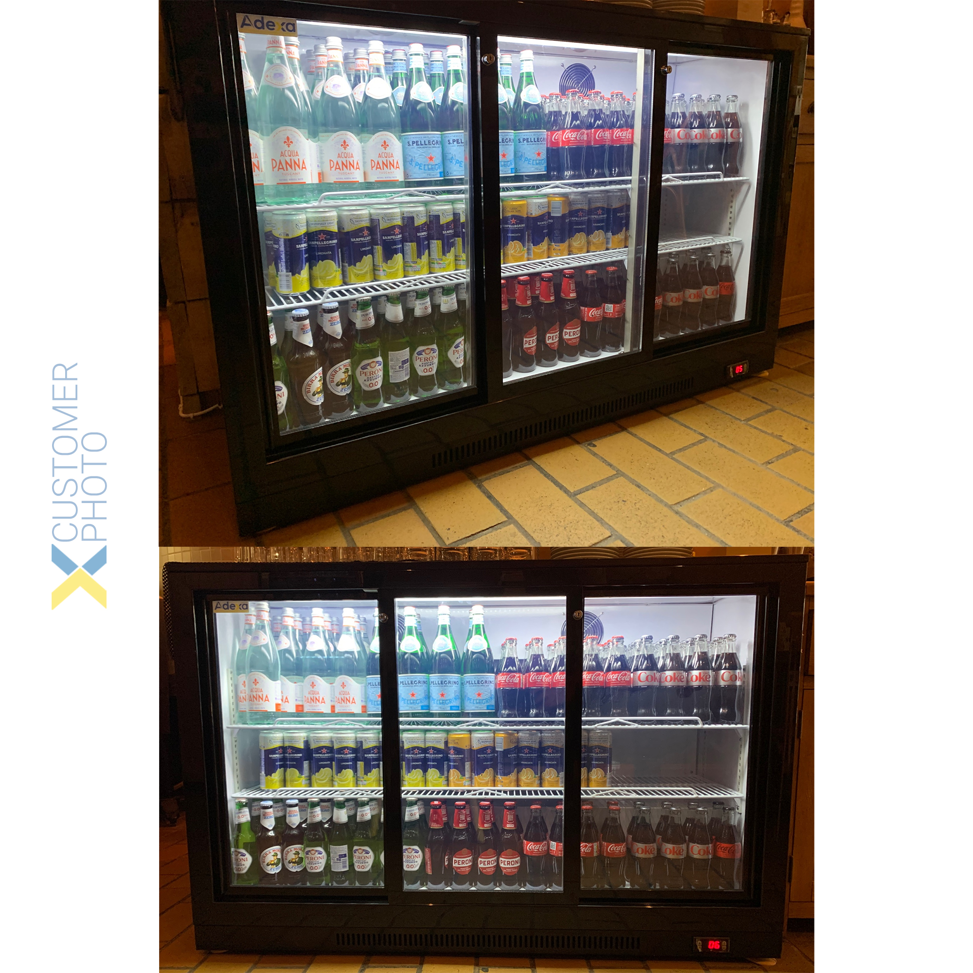 Aizmugurējais bāra dzesētājs ar 3 bīdāmām durvīm 300 litri Melns | Adexa BC03PS