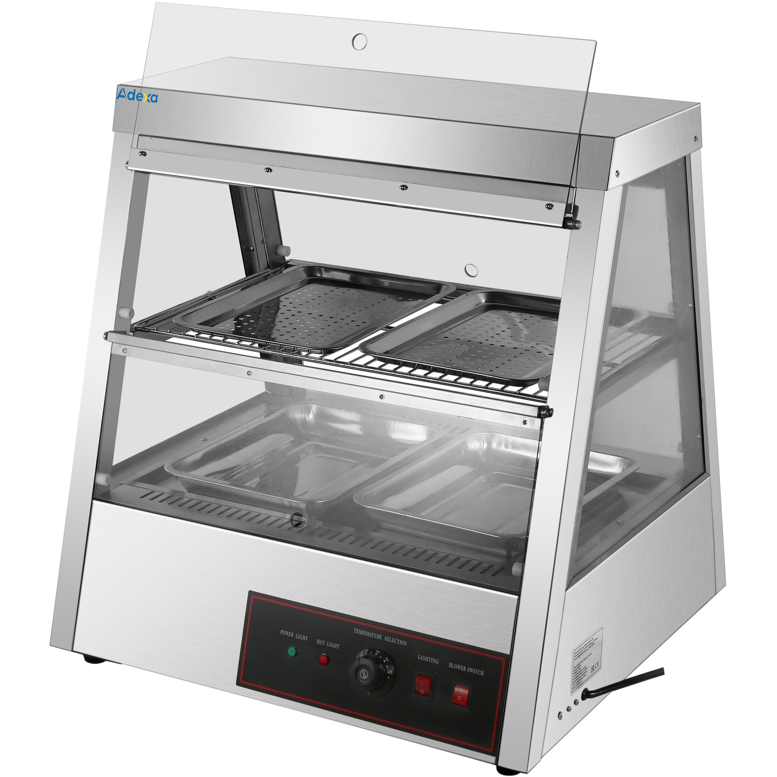 Apsildāma vitrīna 2 līmeņi Atveras aizmugurē un priekšpusē 700x655x740mm Galda virsma | Adexa HW2X2