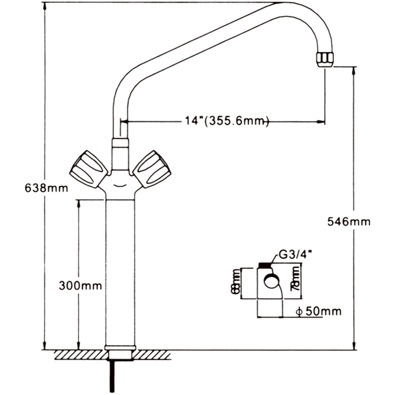 Augstais klāja stiprinājuma izlietnes jaucējkrāns 500 mm | Adexa HBF500
