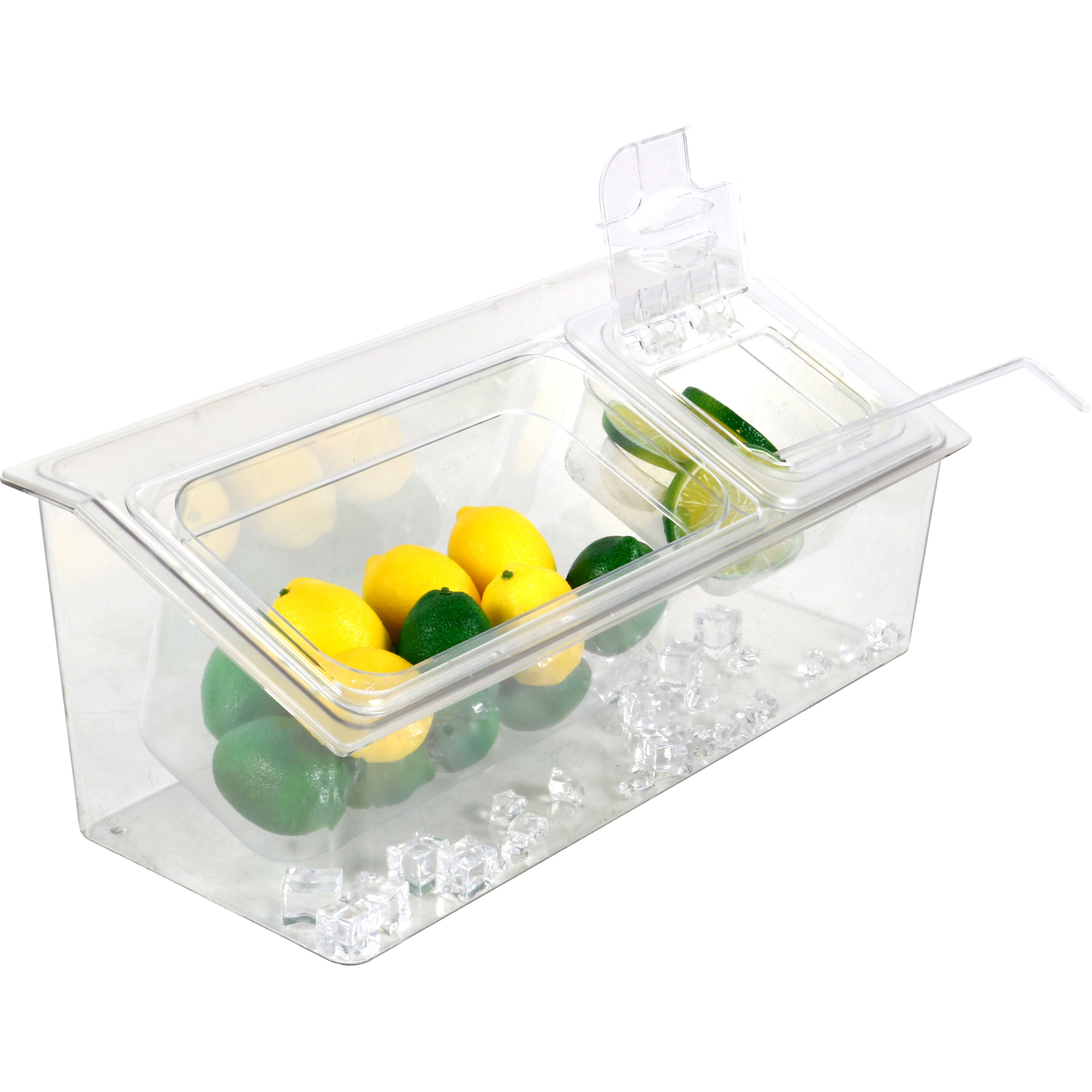 Izmantojiet šo garšvielu bāru ar ieliktņiem, lai jūsu bārs vai restorāns vienmēr būtu piepildīts ar svaigām garšvielām. Svaigas garšvielas un rotājumi patiešām piešķir noslēdzošo akcentu jebkuram dzērienam vai ēdienam! Šis garšvielu turētājs ir ideāli piemērots lietošanai bārā, taču to var izmantot arī, lai turētu pārtiku jūsu virtuves sagatavošanas zonā, bufetē vai ēdnīcā, lai nodrošinātu vieglu pašapkalpošanās iespēju. Vāks palīdz novērst krustenisko piesārņojumu un aizsargā pārtiku no gaisā esošajiem piesārņojumiem. Jūsu pārtikas produkti kalpos ilgāk, ja šīs garšvielu turētāja pamatni piepildīsiet ar ledu. Tas nodrošinās, ka jūsu aukstie produkti paliks svaigi un gatavi lietošanai ilgāku laiku. Pateicoties izturīgajai plastmasas konstrukcijai, trauks ir pietiekami izturīgs, lai izturētu biežu lietošanu. Plastmasa ir viegli noslaukāma dienas beigās, nodrošinot tīrību un higiēnu jūsu iestādē. Ir noliktavā