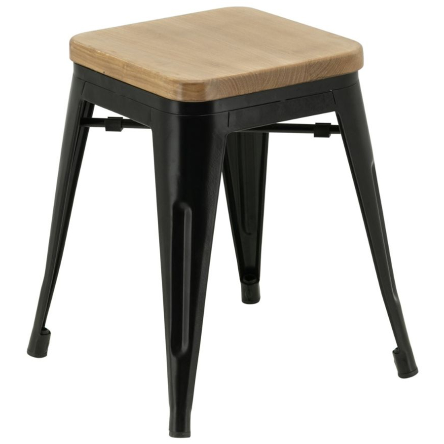 Bāra zems krēsls ar dabīgā koka sēdekli Melna tērauda Interjeram | Adexa WW65BN