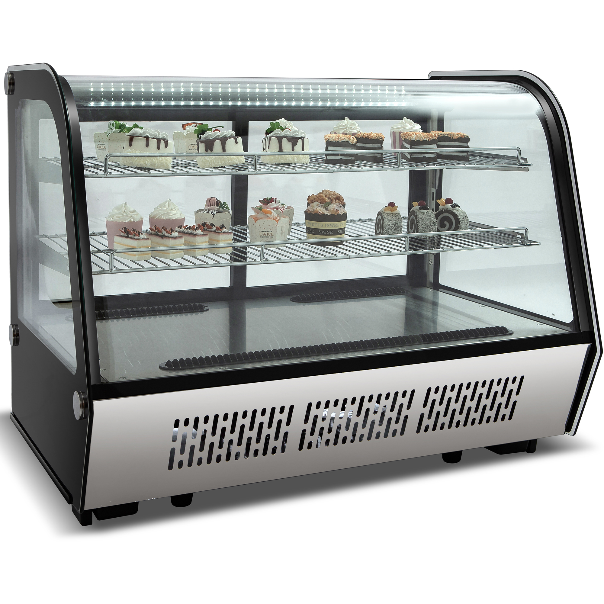 Displeja vitrīnas ledusskapis 160 litri 2 plaukti Melns un nerūsējošā tērauda ar izliektu priekšpusi | Adexa CW160R