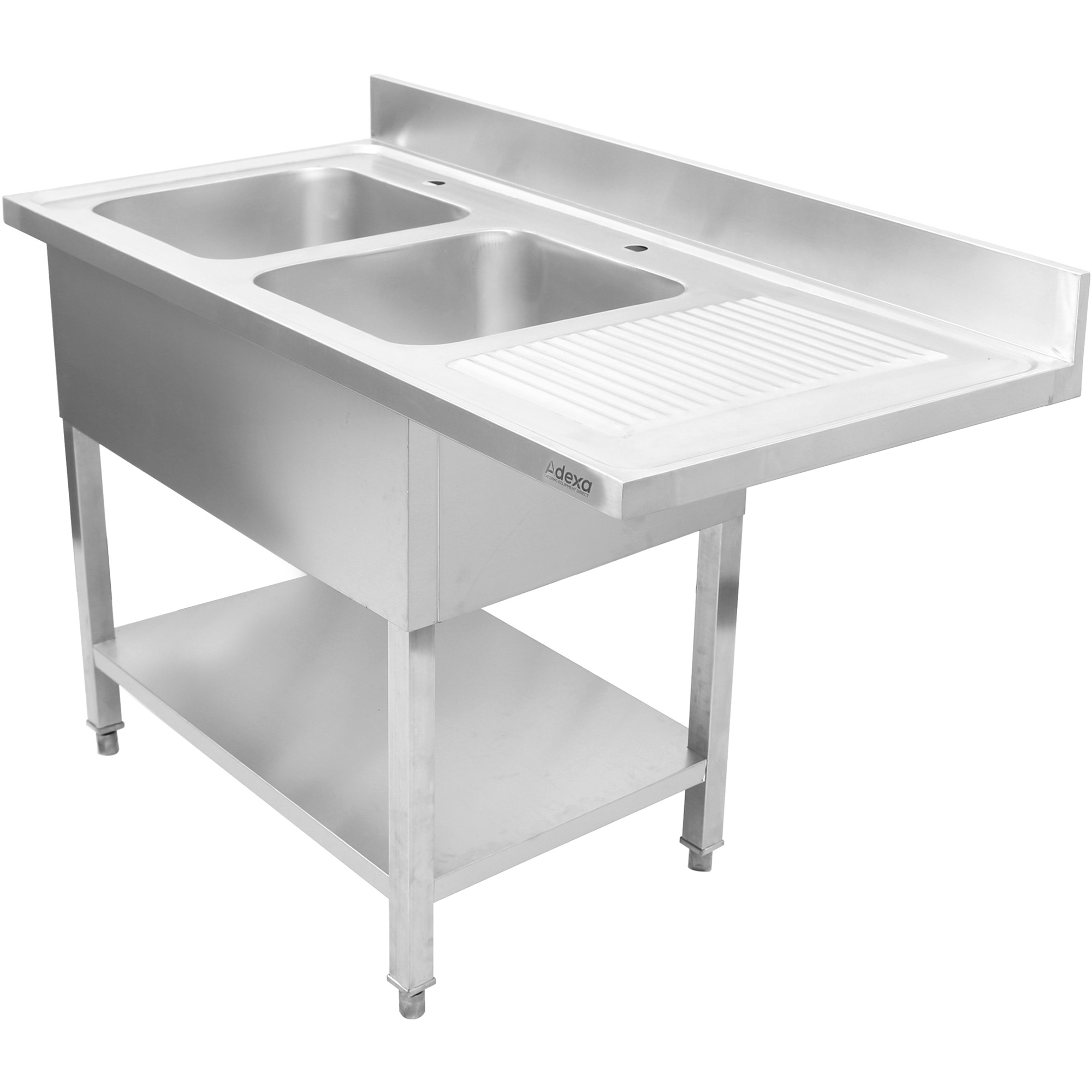 Divkāršā izlietne kreisajā pusē ar noteces virsmu un aizmugurējo sienu 1800x600x910mm | Adexa DSB1860L