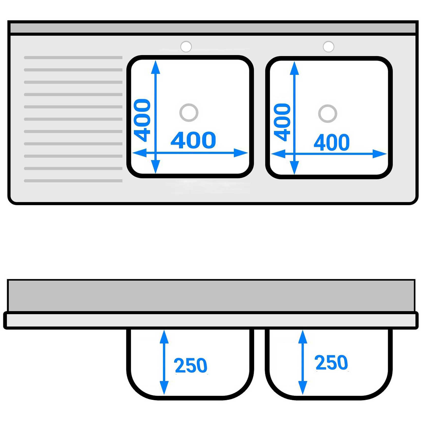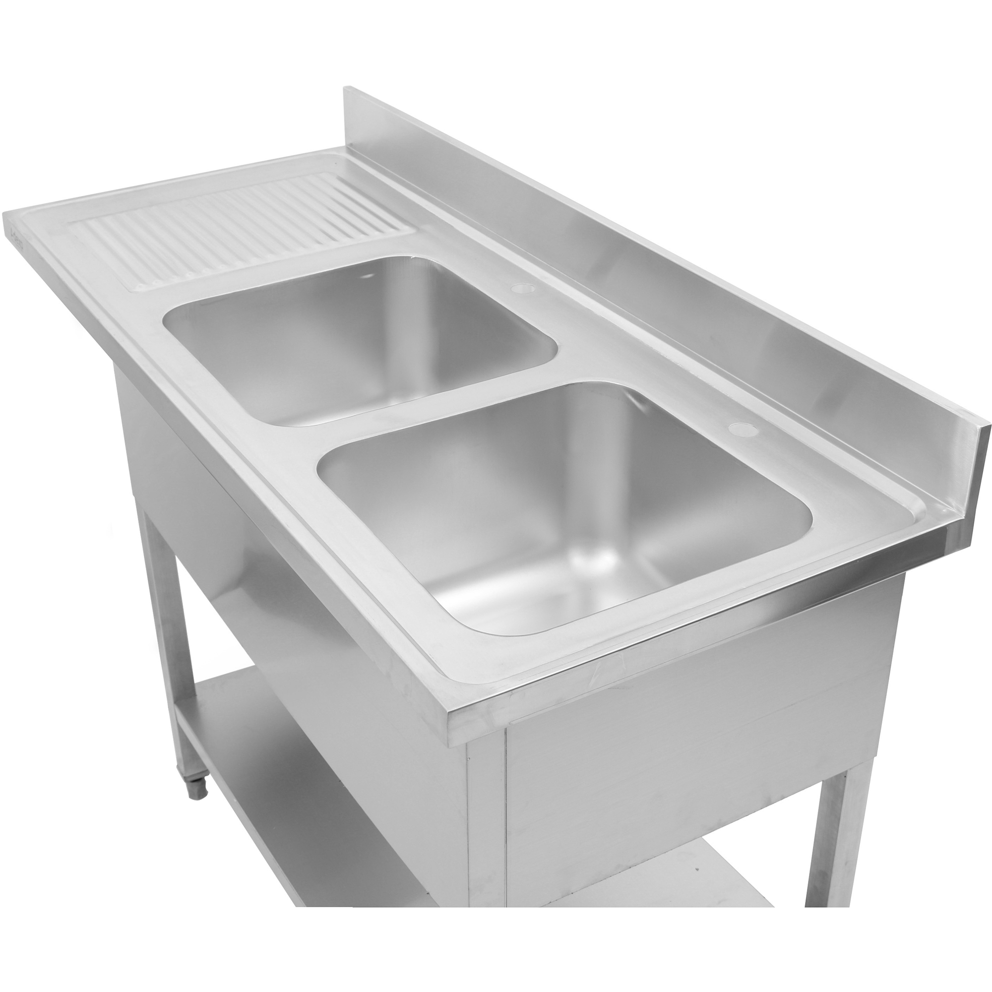 Original price was: 1180,79 €.507,74 €Current price is: 507,74 €. (ei sis. KM) Dubultā izlietne ar notecināšanas virsmu Kvadrātveida kājas stabilitātei Metinātas bļodas augstai izturībai 10 cm aizmugures siena, lai saglabātu sienas tīras un aizsargātas Pastiprināts rāmis papildus stabilitātei Stilīga viļņveida notecināšanas virsma Šī augstākās kvalitātes dubultā izlietne ir paredzēta profesionālu virtuves vajadzību apmierināšanai, apvienojot funkcionalitāti ar estētiku. Metinātas bļodas un pastiprinātās malas nodrošina izturīgu konstrukciju, kas iztur ikdienas lietošanu. Viļņveida notecināšanas virsma ir ne tikai praktiska, bet arī piešķir elegantu pieskārienu. Aizmugures siena padara to ideāli piemērotu virtuvju tīrības un kārtības uzturēšanai, savukārt kvadrātveida kājas nodrošina stabilitāti pat intensīvas darba laikā. Lieliska izvēle gan restorāniem, gan privātajām virtuvēm ar augstiem standartiem. Sīkāku informāciju skatiet sadaļā ‘Specifikācijas’ un zemāk sadaļā ‘Saistītie produkti’ apskatiet izsmidzināšanas ierīces un jaucējkrānus. Ir noliktavā