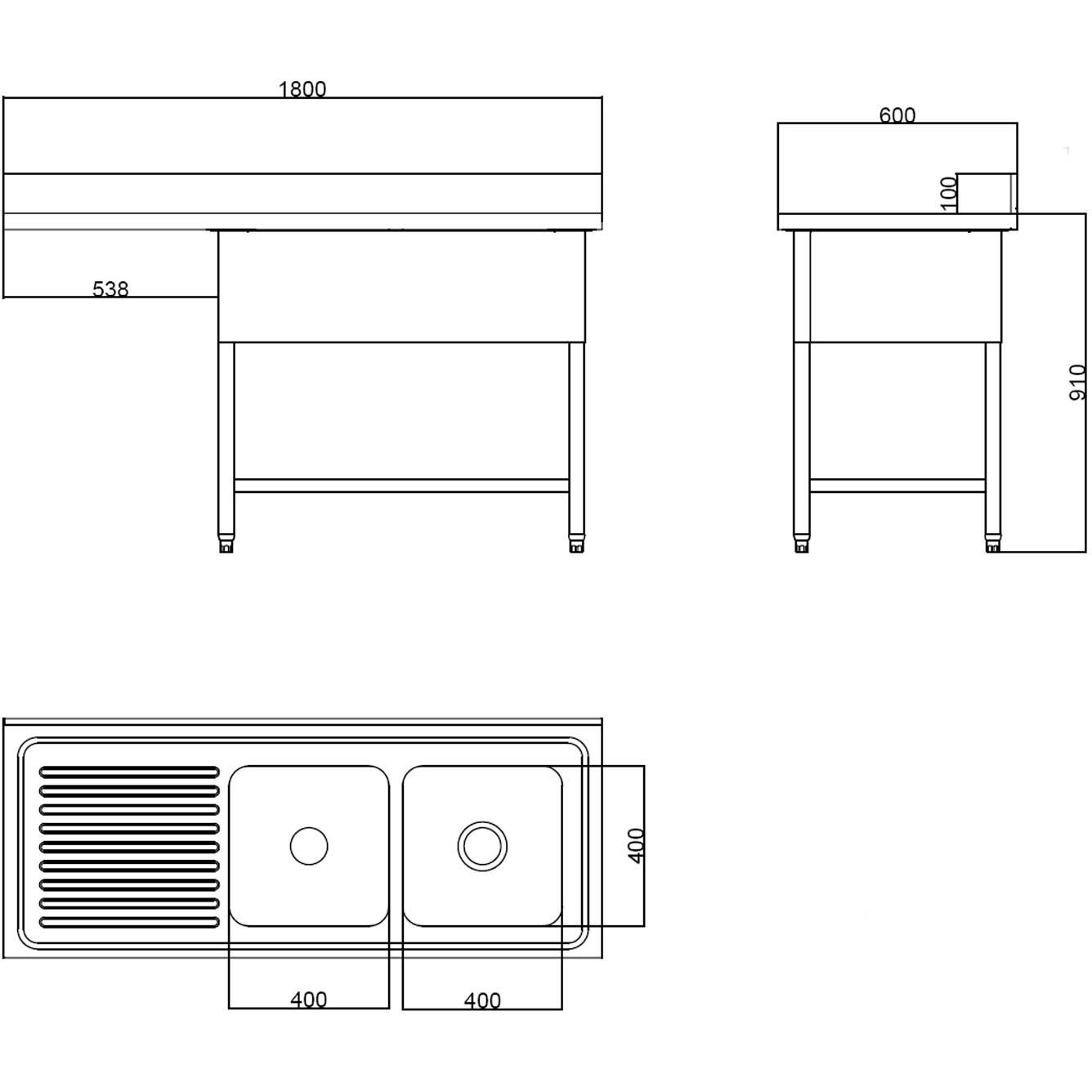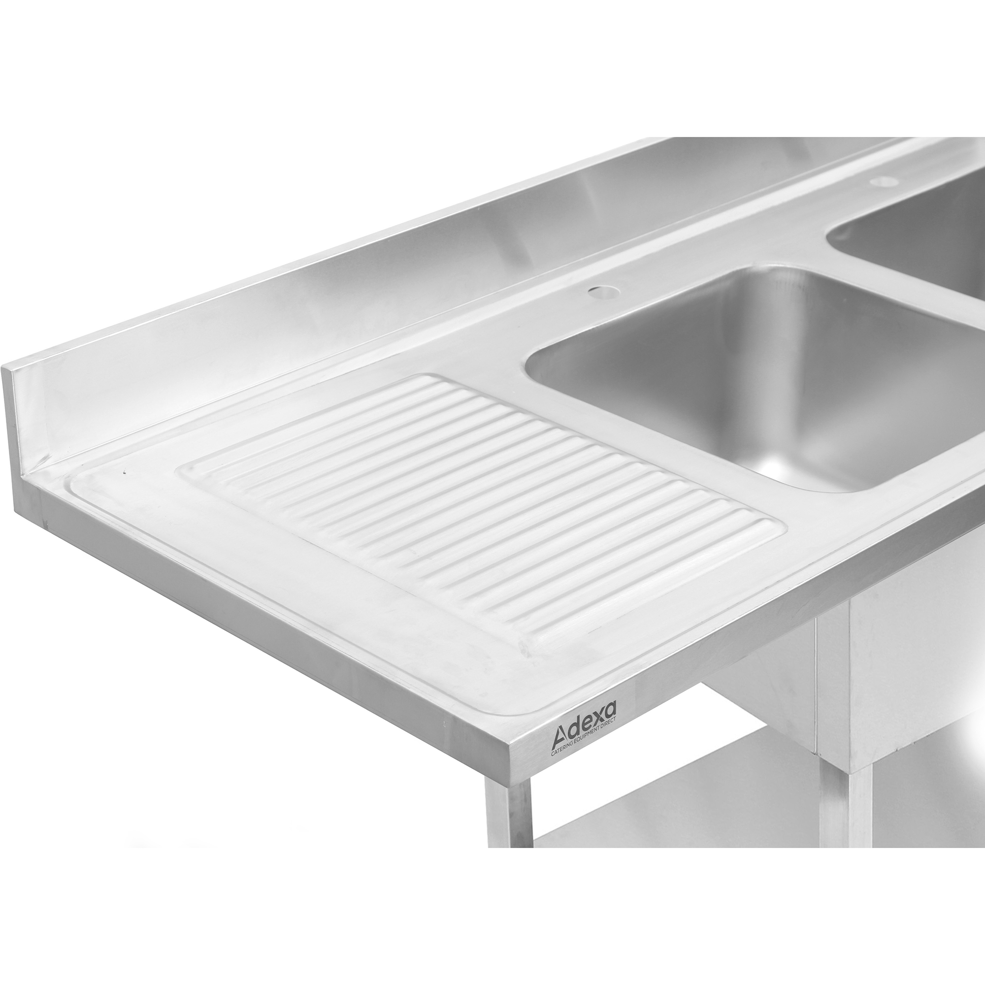 Dubultā izlietne pa labi ar notecināšanas virsmu un aizmugures sienu 1800x600x910mm | Adexa DSB1860R