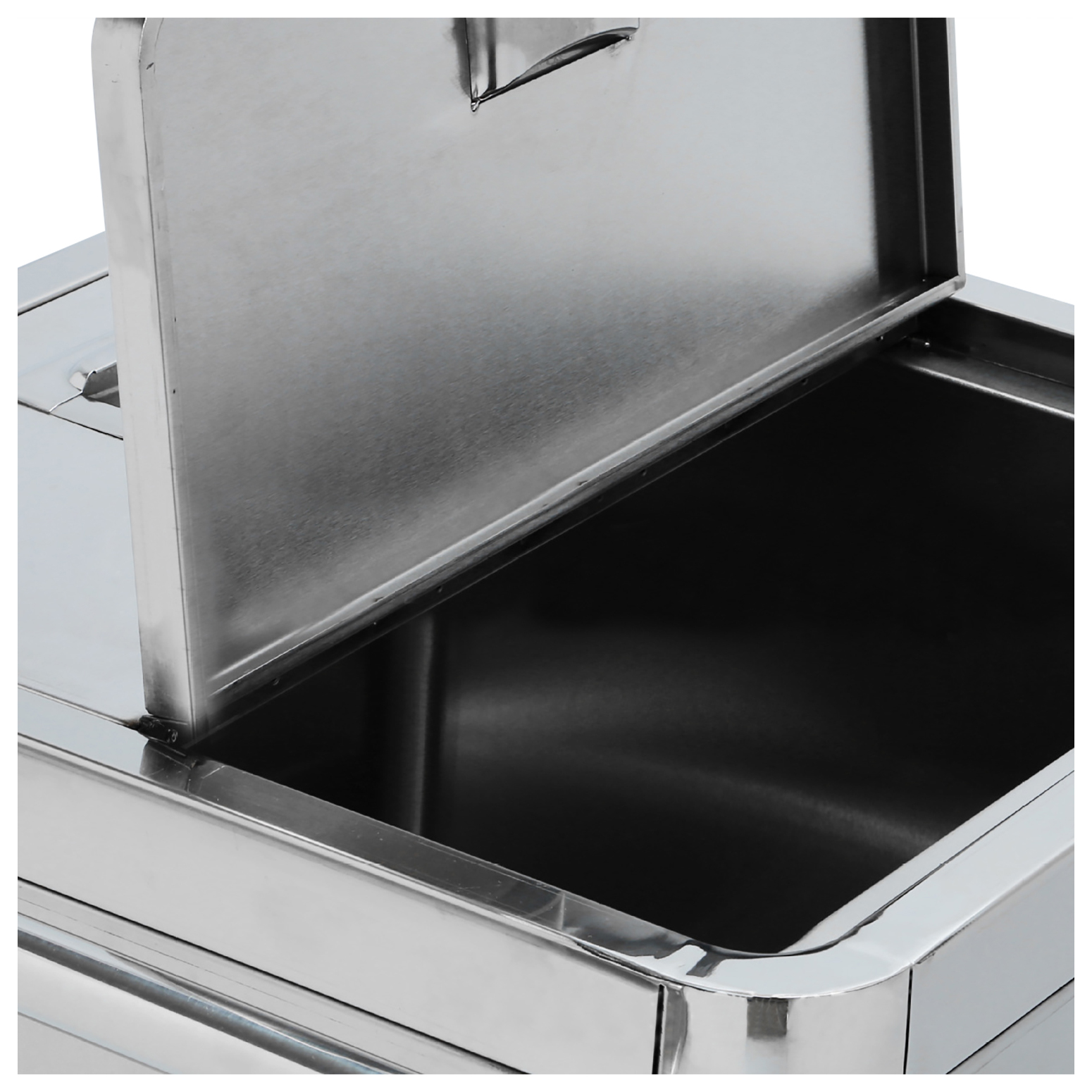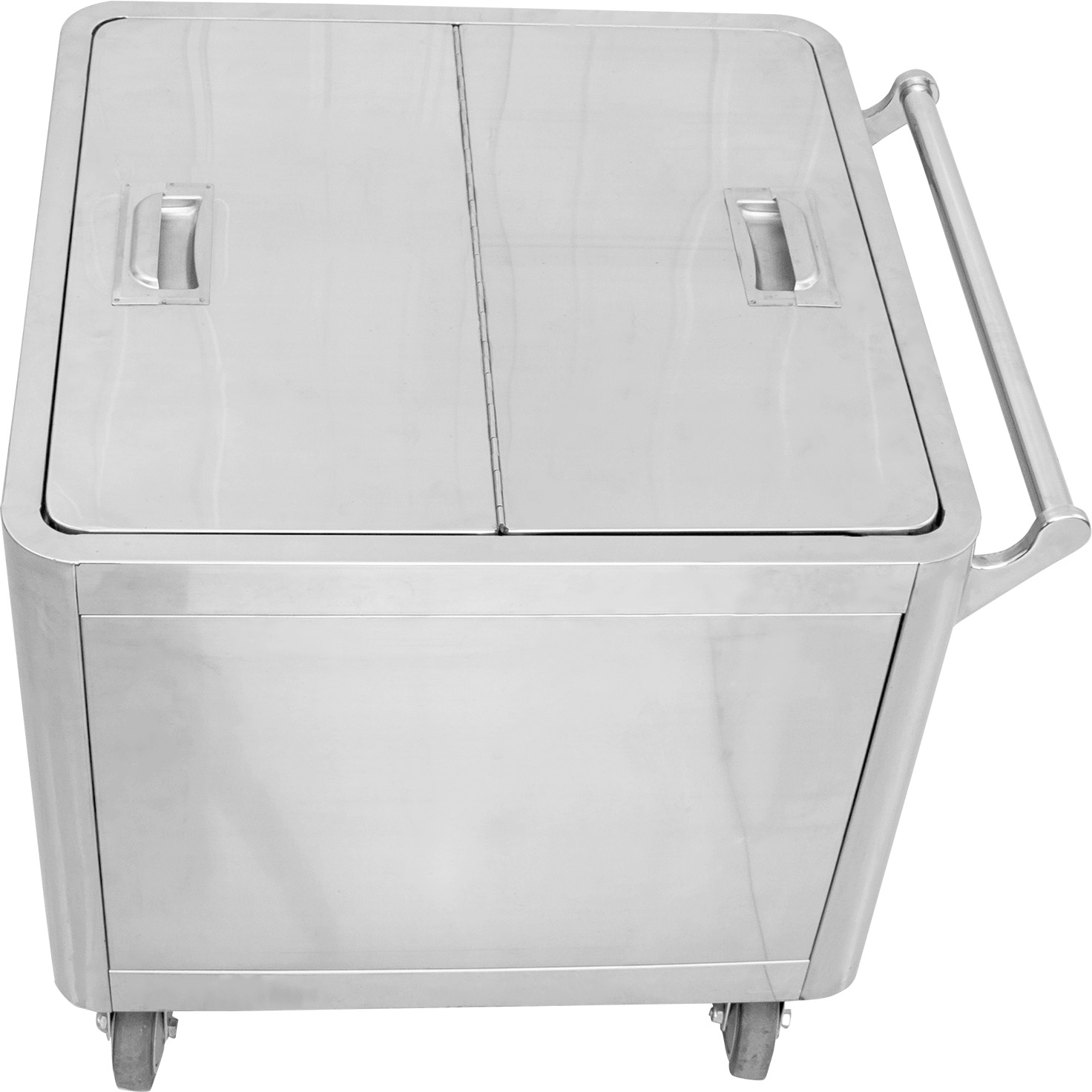 Original price was: 401,51 €.236,89 €Current price is: 236,89 €. (ei sis. KM) Profesionāli nerūsējošā tērauda sastāvdaļu ratiņi ar 4 ritentiņiem. Šo ratiņu vāki ir aprīkoti ar dalītu vāku, kas atveras abās pusēs. Ļoti daudzpusīgi uzglabāšanas ratiņi jebkuram restorānam, viesnīcai vai bāram, kurus viegli var izmantot arī citiem mērķiem. Materiāls: nerūsējošais tērauds Ir noliktavā
