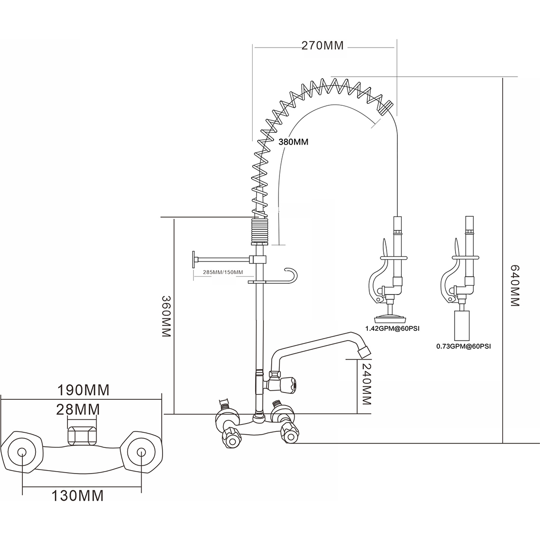 Original price was: 265,22 €.156,48 €Current price is: 156,48 €. (ei sis. KM) Profesionāla un ļoti izturīga iepriekšējās skalošanas smidzināšanas iekārta, ideāli piemērota ēdināšanas pakalpojumiem, komerciālām virtuvēm, restorāniem un viesnīcu lietojumiem. Sienas uzstādāma veida. Dubulta ieeja (karstu un aukstu ūdeni). Izturīga nerūsējošā tērauda konstrukcija. Ir noliktavā