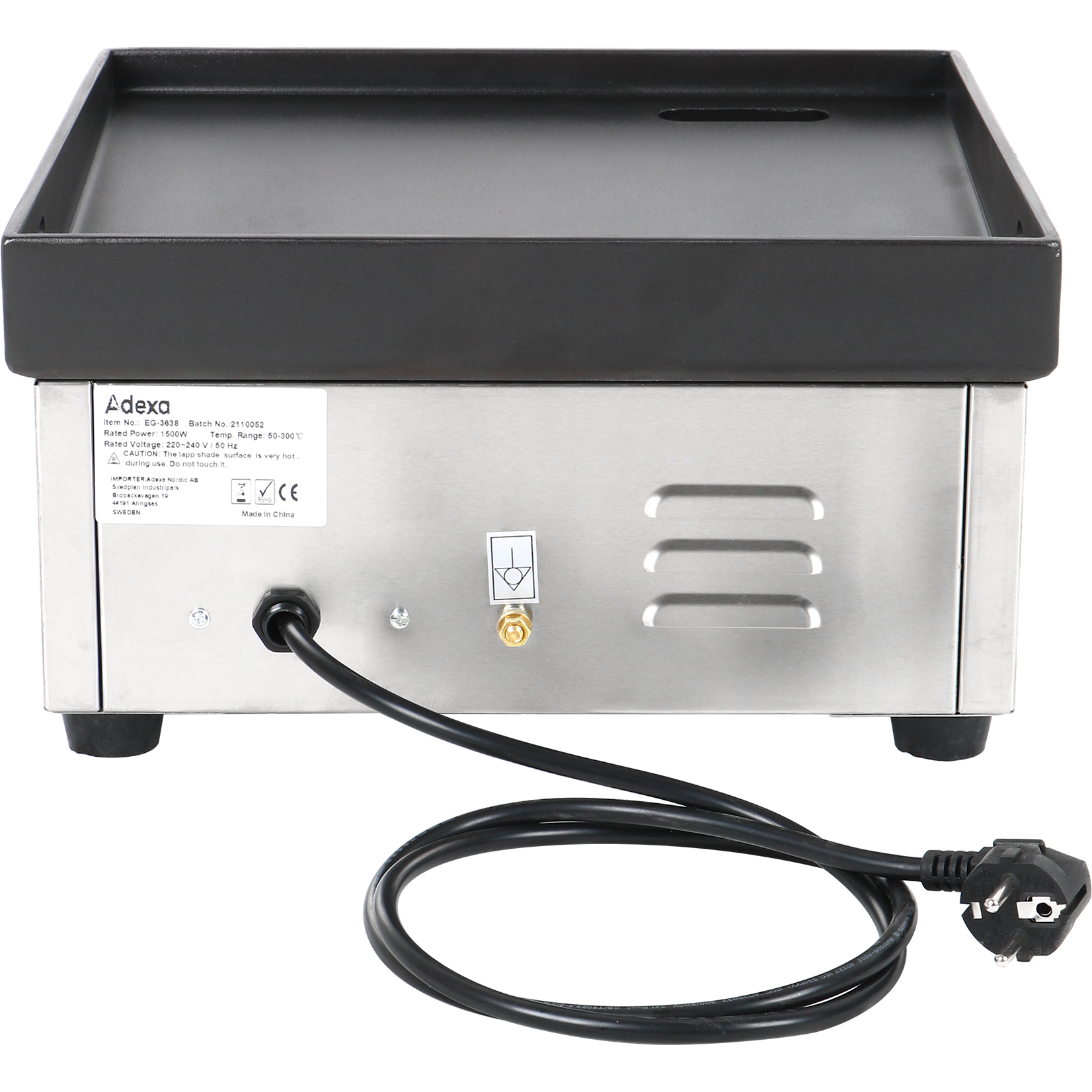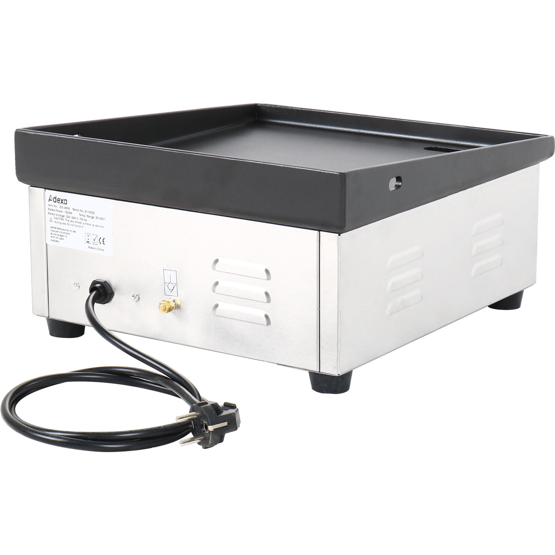 Komerciālā gludā cepamvirsma 360x380mm Emaljēta plāksne 1,5 kW elektriska | Adexa EG3638