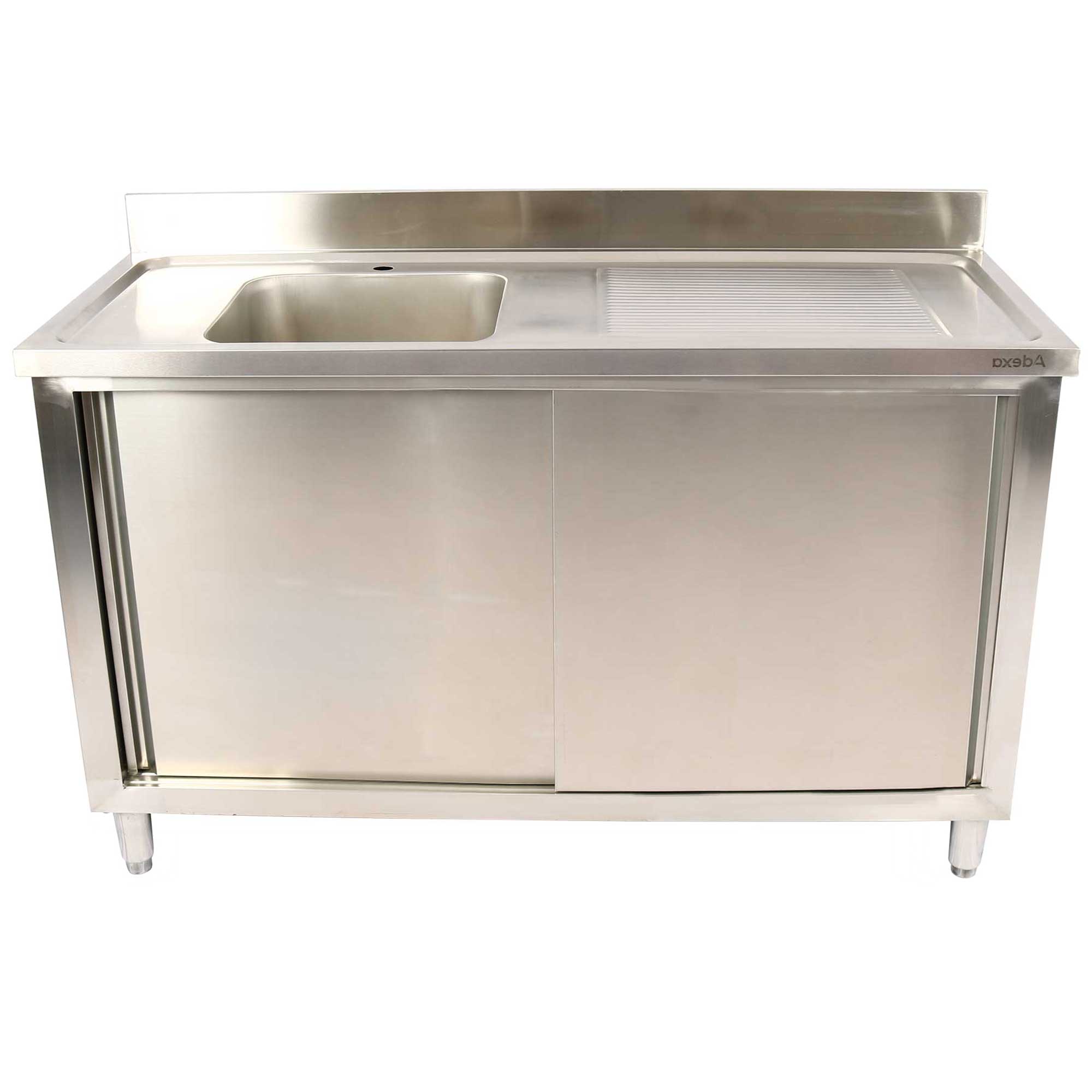 Komerciāla izlietne ar bīdāmām durvīm Nerūsējošais tērauds 1 bļoda Kreisā Apakšējā plaukta Atūdens skārds 1800x700x900mm | Adexa DSA180702DL