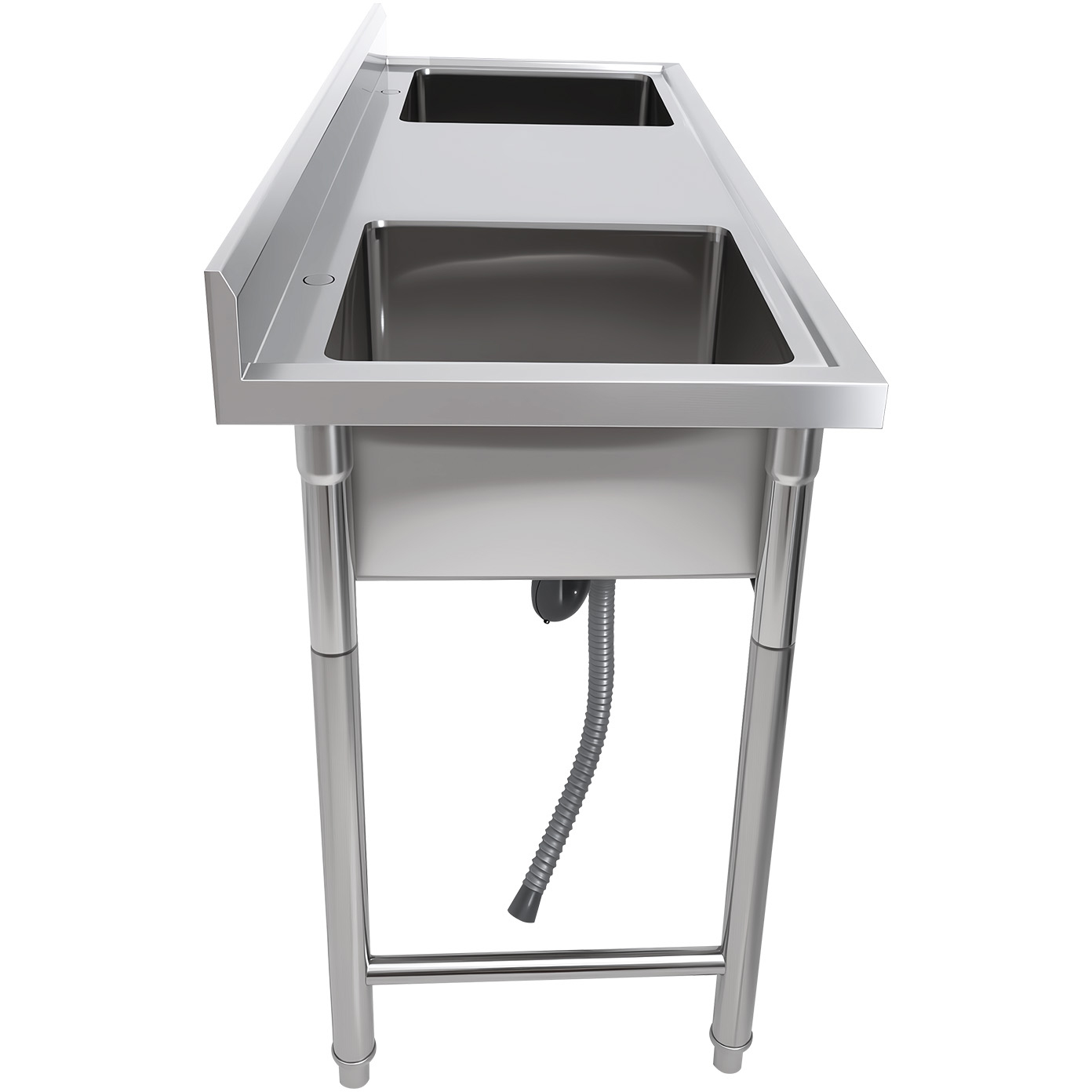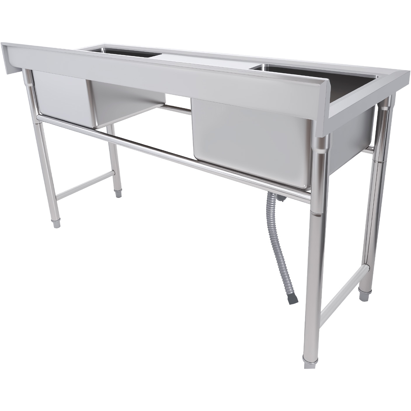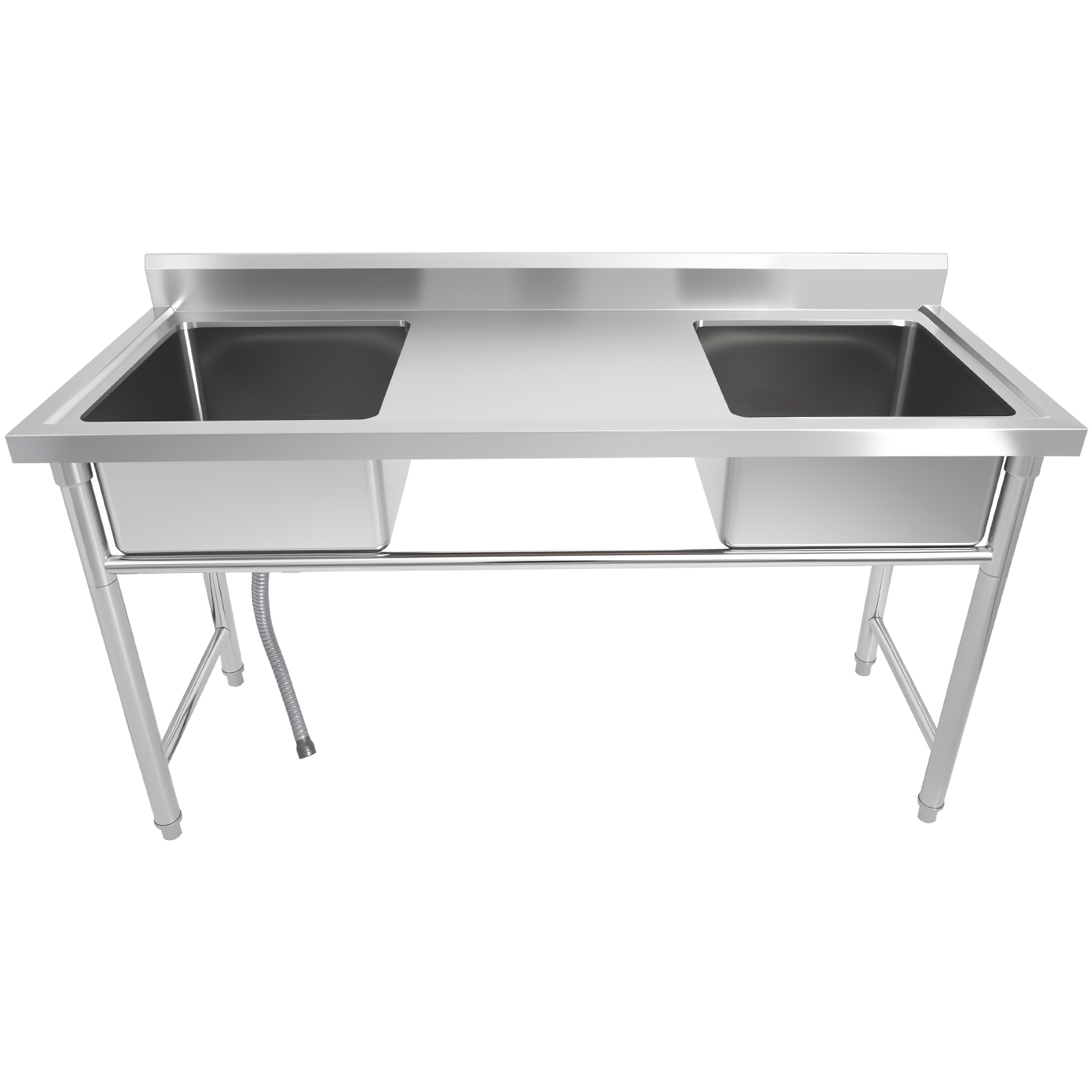Komerciālā izlietne Nerūsējošais tērauds 1570x600x900mm 2 bļodas Aizsargsiena | Adexa YDRST60160X2M