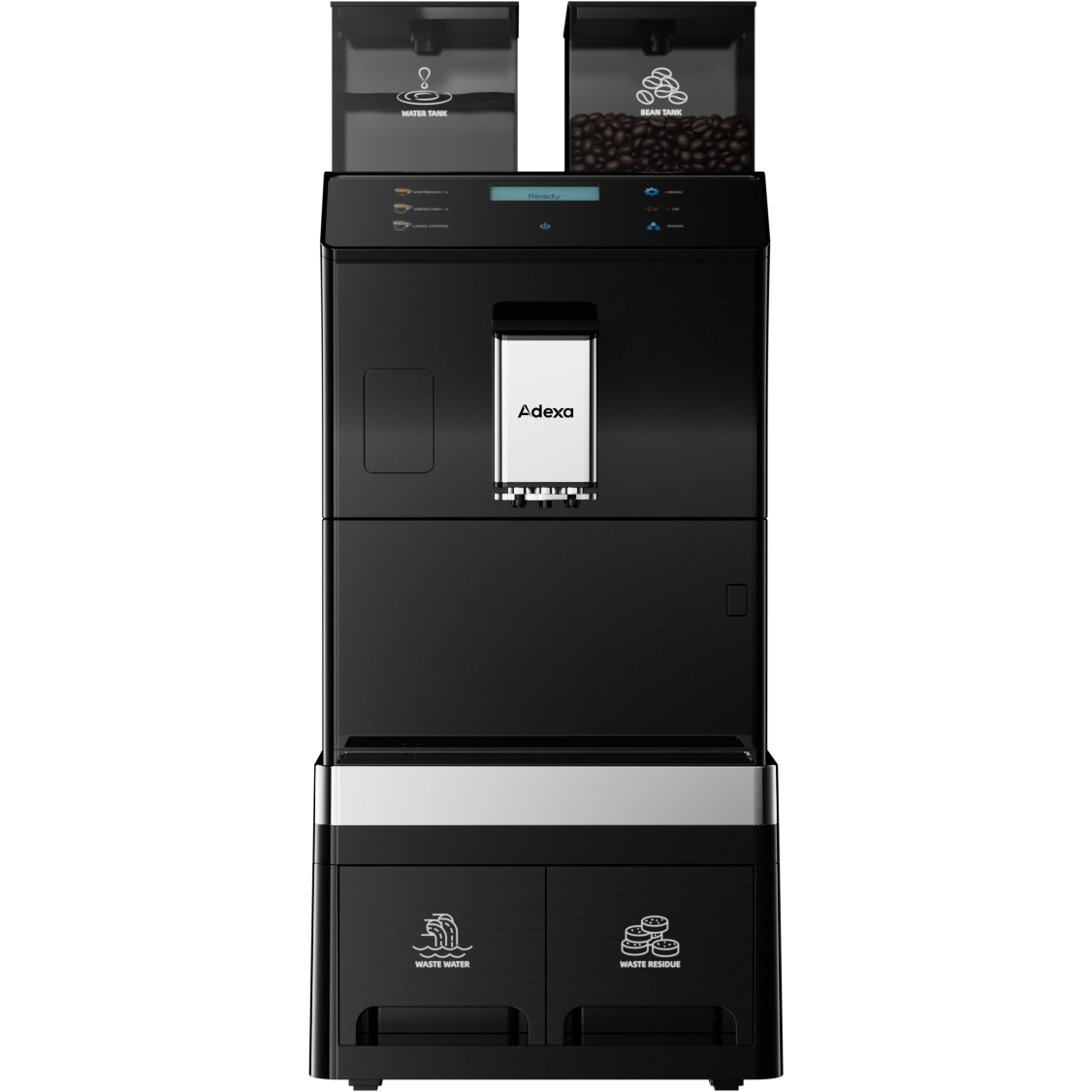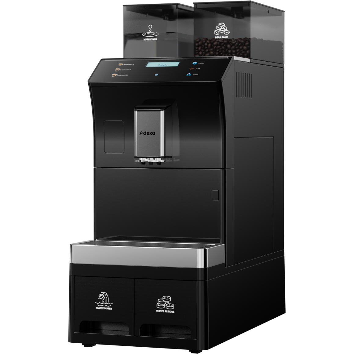 Komerciālā kafijas automāts pilnībā automātisks no pupiņām līdz krūzei 4 dzērieni 3 ūdens pieslēguma iespējas | Adexa BTB1016