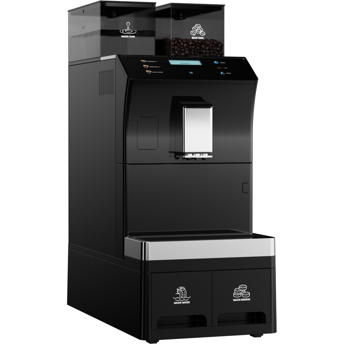 Original price was: 846,25 €.592,38 €Current price is: 592,38 €. (ei sis. KM) Uzlabojiet savu kafijas servisu ar šo profesionālo automātisko kafijas automātu. Nodrošiniet barista kvalitātes kafiju ar nepārspējamu ātrumu un konsekvenci, viss ar vienu pogas pieskārienu. Šis pilnībā automātiskais kafijas automāts ir ideāls risinājums lielam apjomam jūsu birojā, pusdienu telpā, kafejnīcā, viesnīcā vai ātrās apkalpošanas vidē, novēršot nepieciešamību pēc plašām barista apmācībām, vienlaikus garantējot izcilu garšu katrā krūzē. Galvenās iezīmes un priekšrocības: Patiesa “No pupiņām līdz krūzei” svaigums: Integrēts, profesionālas kvalitātes nerūsējošā tērauda konusveida dzirnaviņas malina veselas pupiņas pēc pieprasījuma katram dzērienam, saglabājot maksimālo aromātu un garšu, kas zūd iepriekš maltā kafijā. Liels apjoms un ātrums: Paredzēts nepārtrauktai darbībai, šis jaudīgais automāts var saražot līdz 80 perfektu dzērienu stundā, ievērojami samazinot gaidīšanas laiku pīķa periodos. Viena pieskāriena specializētā izvēlne: Pasniedziet plašu populāru dzērienu izvēlni ar vienu pieskārienu, ieskaitot Espresso, Kapučīno, Latte Macchiato, Americano, Flat White un karstu ūdeni/tvaiku. 3 ūdens pieslēguma iespējas: Pieslēdzams tieši pie ūdens līnijas nepārtrauktai darbībai bez nepieciešamības pēc pastāvīgas uzpildes, pieslēdzams pie ārēja ūdens avota vai izmantojams liels iekšējais ūdens tvertne. Vienkāršota tīrīšana un uzturēšana: Ietver automātiskas skalošanas un tīrīšanas programmas brūvēšanas vienībai un piena sistēmai, samazinot darba slodzi un nodrošinot optimālu higiēnu un mašīnas ilgmūžību. Izturīga komerciāla konstrukcija: Paredzēta, lai izturētu augstas noslodzes komerciālu vidi. Intuitīvs interfeiss: Lietotājam draudzīgs krāsu LCD skārienekrāns vienkāršo dzērienu izvēli gan personālam, gan pašapkalpošanās klientiem. Pielāgojamas dzērienu receptes, stiprums un tilpums ir pilnībā programmējami. Automātiska kafijas pupiņu atlikumu ekstrakcijas sistēma 100% nerūsējošā tērauda konusveida dzirnaviņas Noņemama brūvēšanas vienība Regulējams kafijas stiprums Regulējams kafijas tilpums Regulējama kafijas temperatūra Regulējams kafijas pulvera malšanas izmērs Automātiska skalošana vieglai tīrīšanai Ātra brūvēšanas kodola tīrīšana Lūdzu, skatiet sadaļu “Specifikācija” detalizētai informācijai. Ir noliktavā
