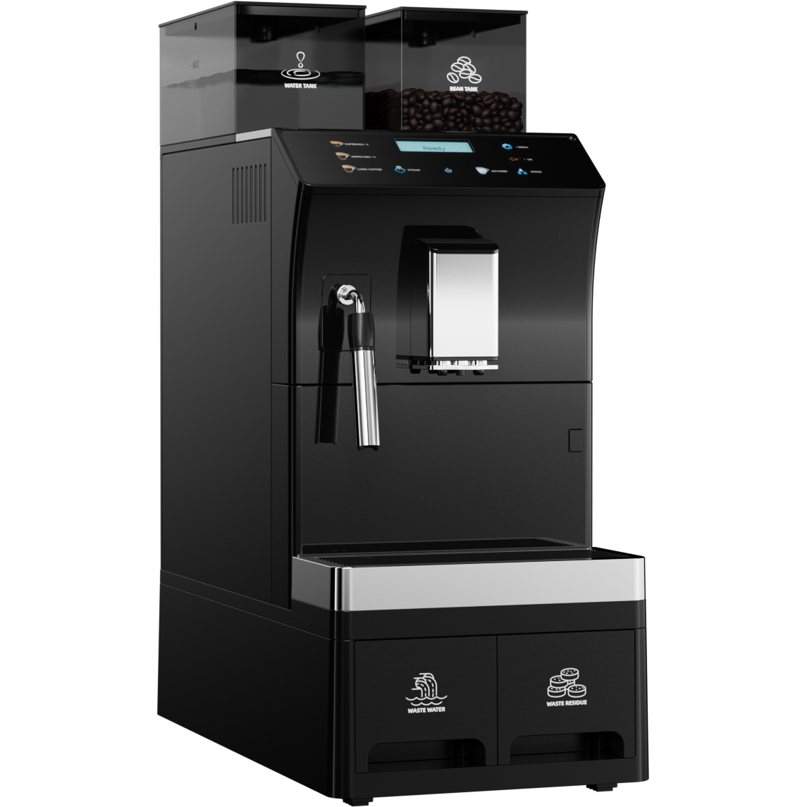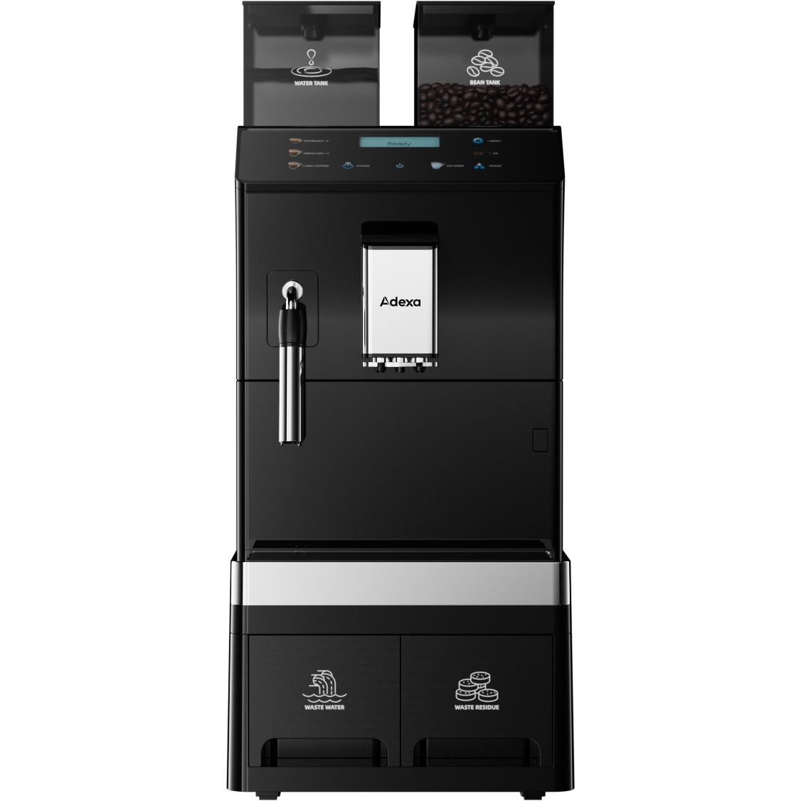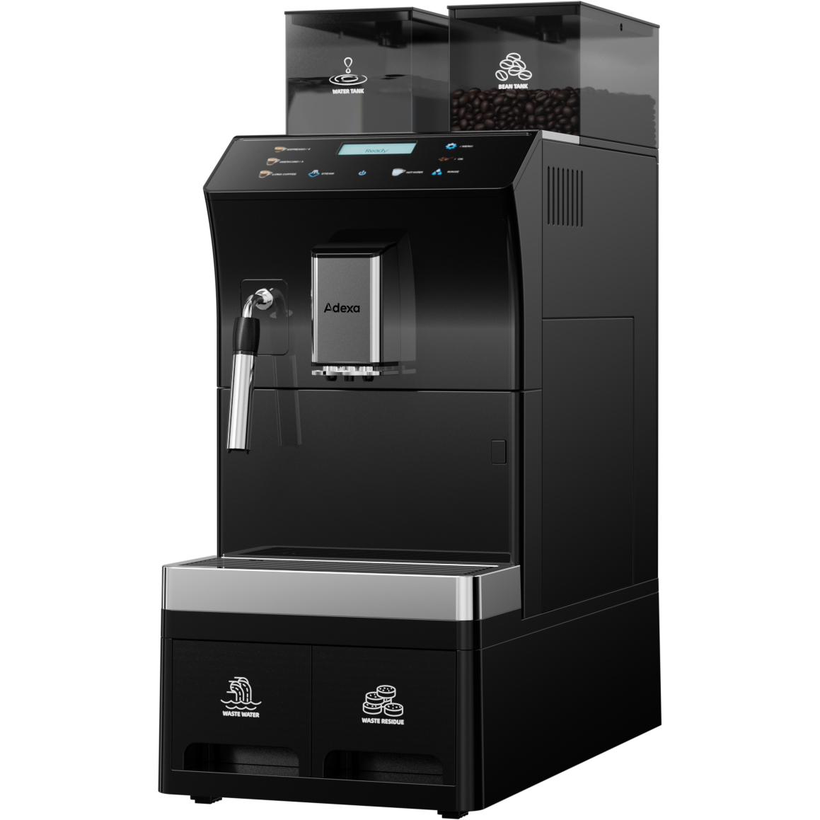 Komerciālā kafijas automāts pilnībā automātisks no pupiņām līdz krūzei 8 dzērieni 3 ūdens pieslēguma iespējas Tvaika stienis | Adexa BTB1015
