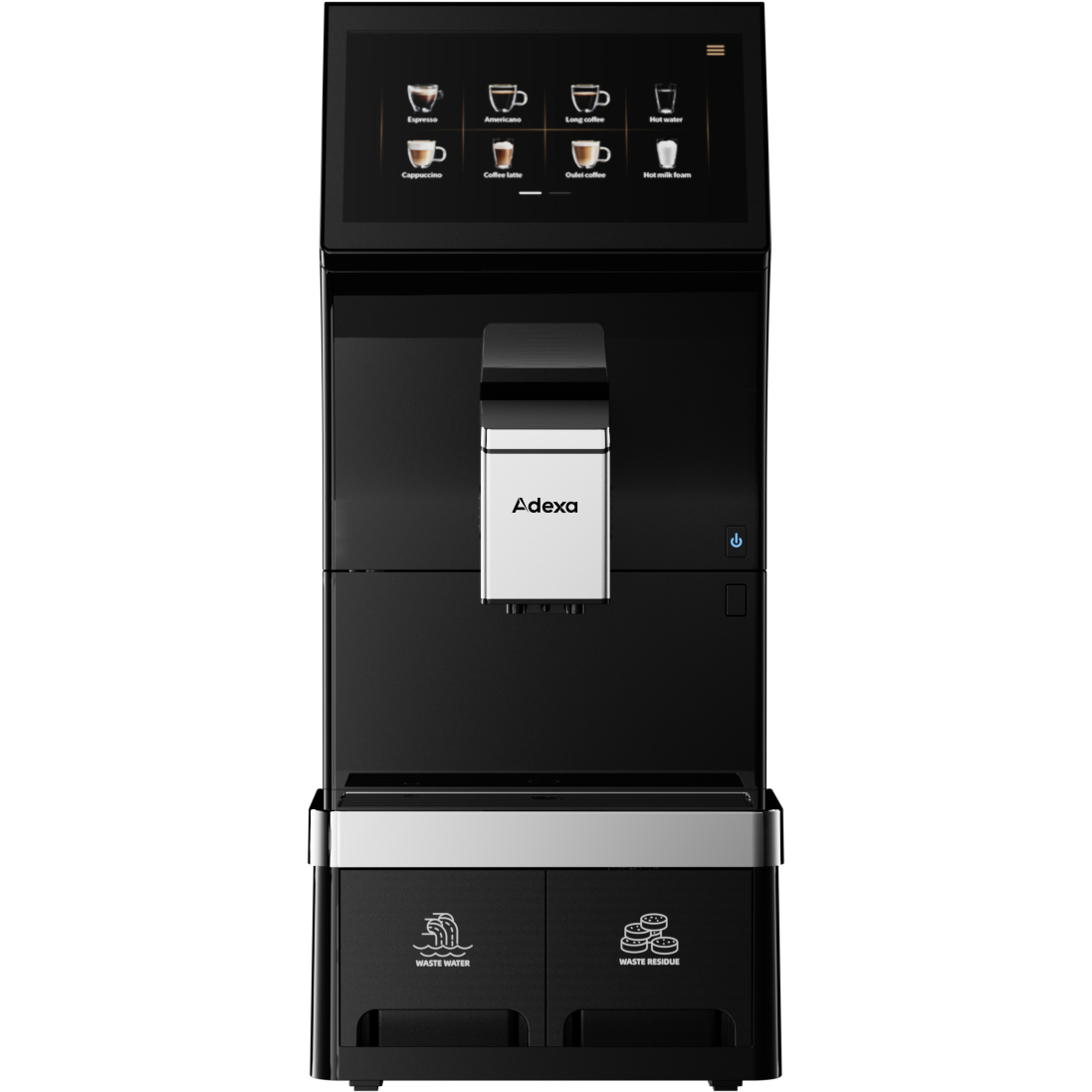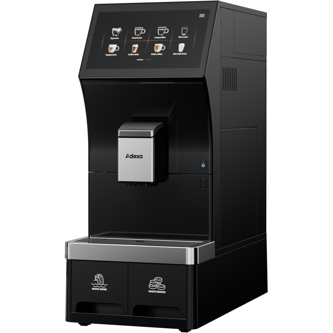 Komerciālā kafijas automāts pilnībā automātisks no pupiņām līdz tasītei 16 dzērieni 3 ūdens pieslēguma iespējas Dubultdzērieni Iebūvēts piena putotājs | Adexa BTB102