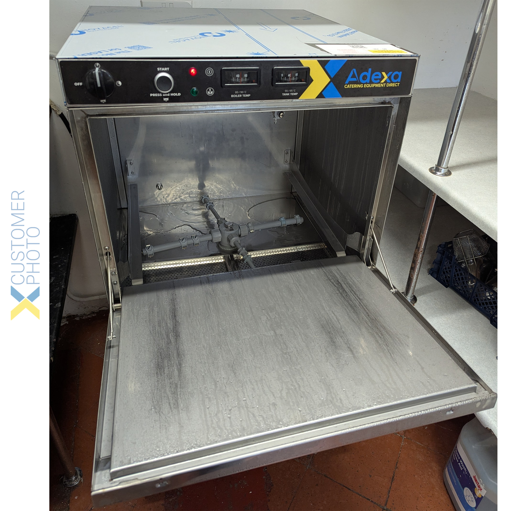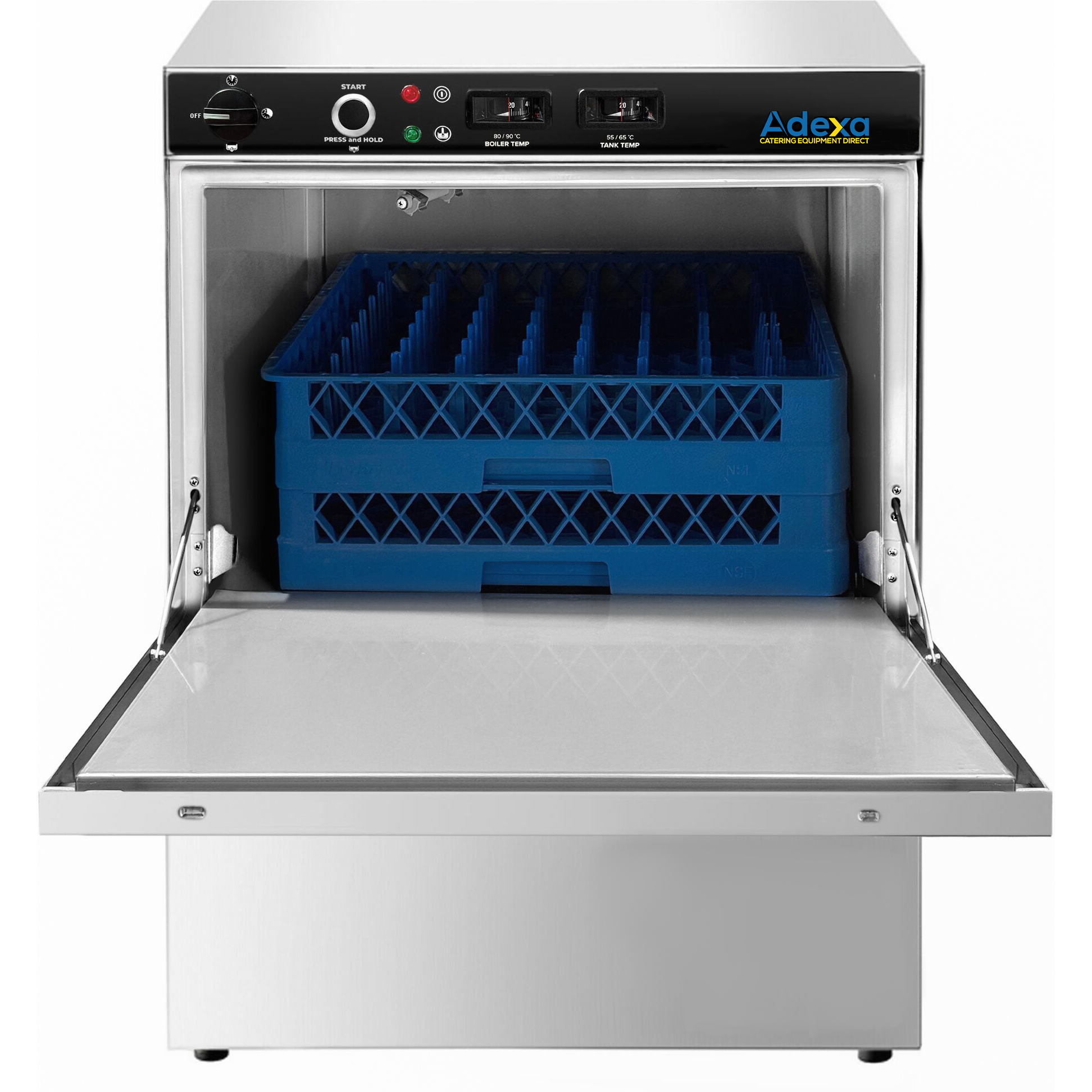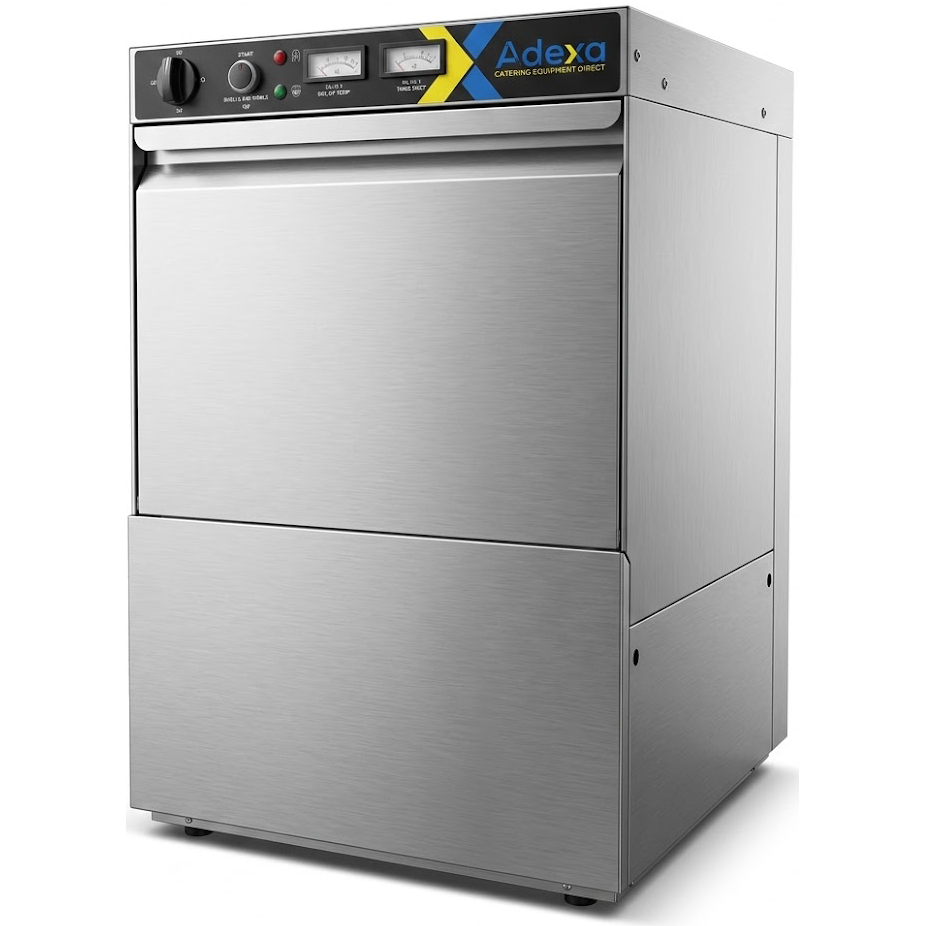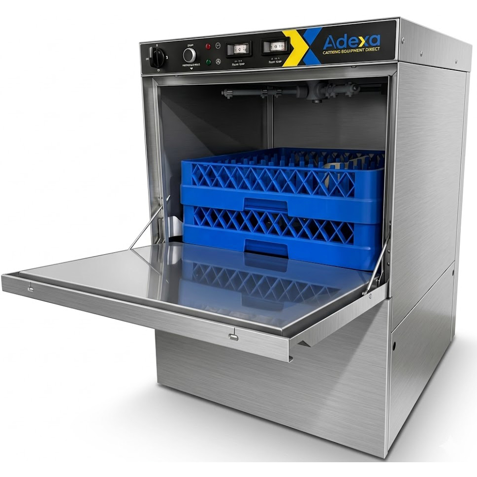 Komerciālā trauku mazgājamā mašīna 500 šķīvji/stundā 500mm grozs Drenāžas sūknis Mazgāšanas līdzekļa sūknis Skalošanas līdzekļa sūknis 230V/1 fāze | Adexa WZ50DRDP