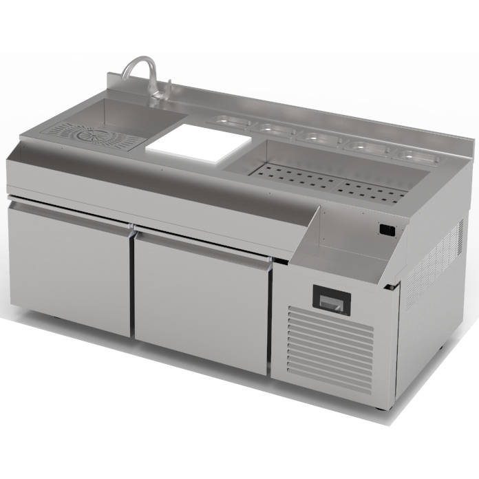 Komerciālais bāra ledusskapis 310 L – 2 atvilktnes ar kokteiļu vienību | Adexa TPG72L2DCT157
