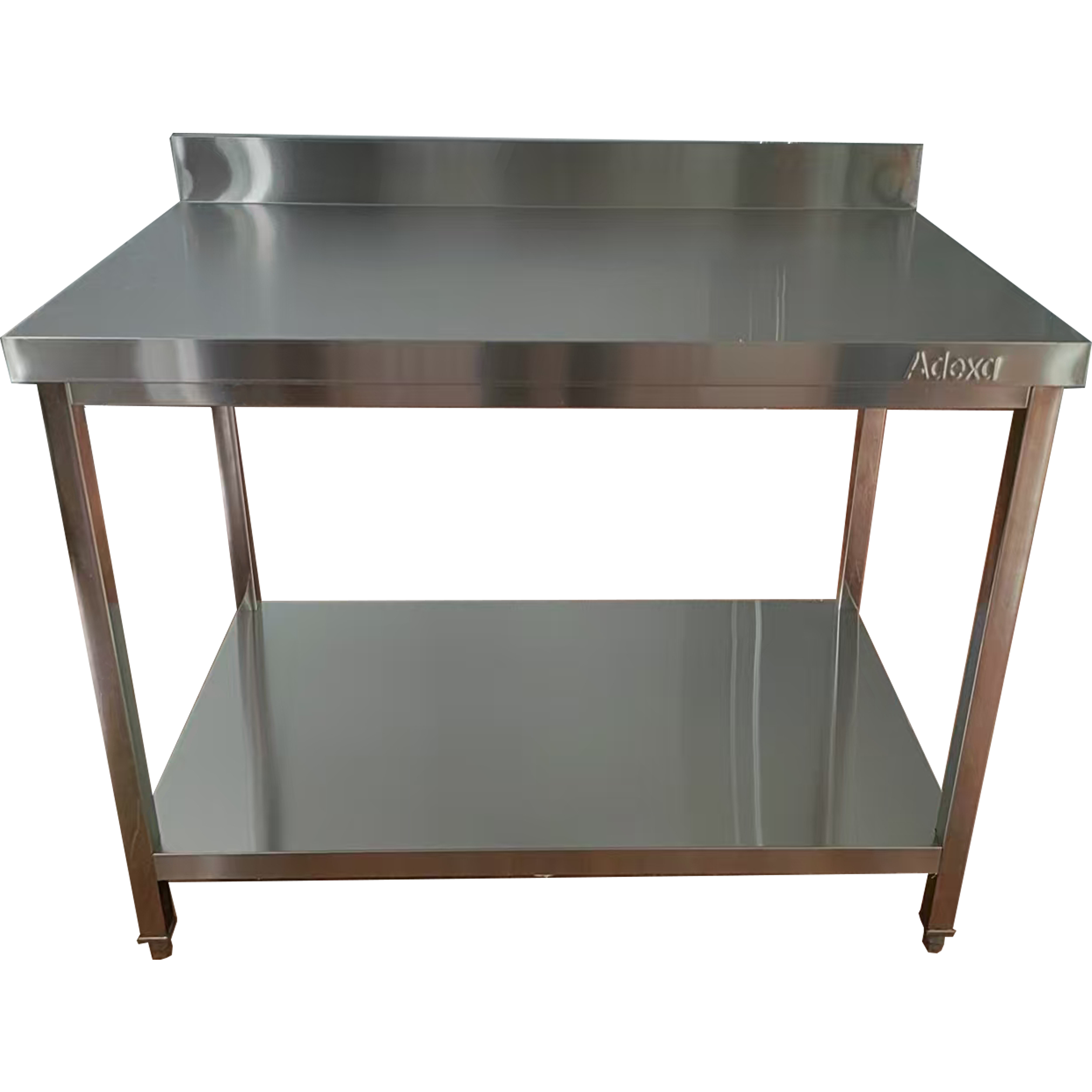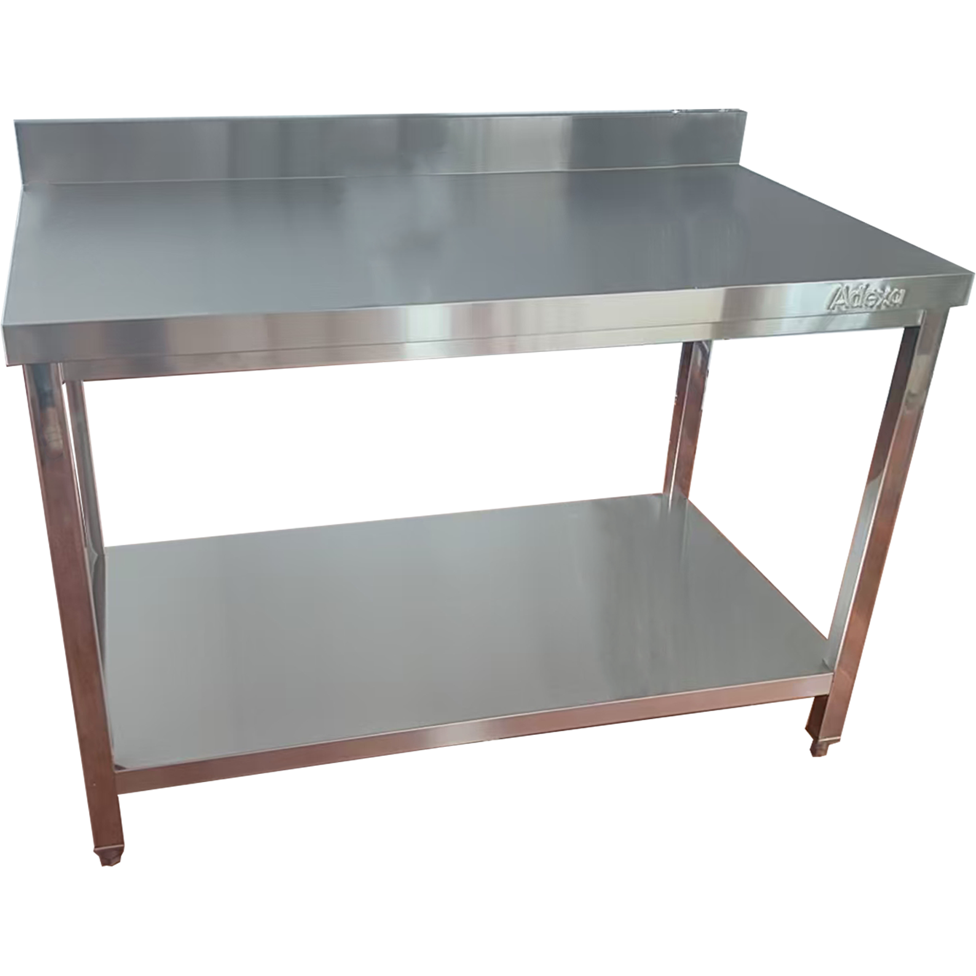 Komerciālais darba galds ar apakšplauktu un backsplash, nerūsējošais tērauds, kvadrātveida kājas, 600x800x900mm | Adexa QNH11134