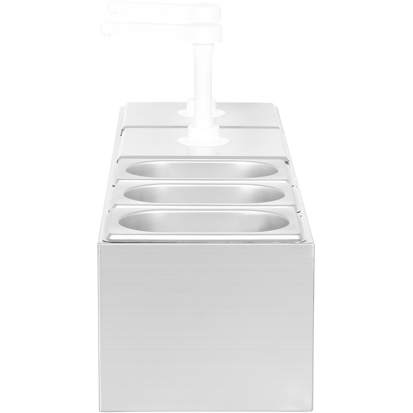 Original price was: 156,17 €.71,84 €Current price is: 71,84 €. (ei sis. KM) Saglabājiet savus garšvielu organizatorus kārtībā, viegli atrodamus un pieejamus ar šo nerūsējošā tērauda garšvielu bāru! Šis garšvielu bārs ir aprīkots ar 2 dozēšanas sūkņiem šķidrajām garšvielām, savukārt viens trauks starp tiem var ietilpt līdz 1,1 litram cietu garšvielu. Nerūsējošā tērauda korpusam ir izcila izturība un temperatūras saglabāšana, nodrošinot, ka jūsu ledus iepakojumi paliek vēsi pēc iespējas ilgāk. Un, pateicoties viegli lietojamiem plastmasas sūkņiem, jūs varat samazināt izšķērdēto produktu daudzumu, kad jūsu klienti izmanto garšvielas. Ir noliktavā