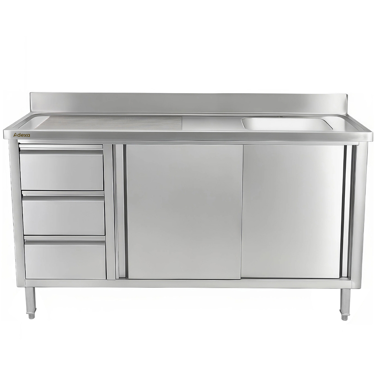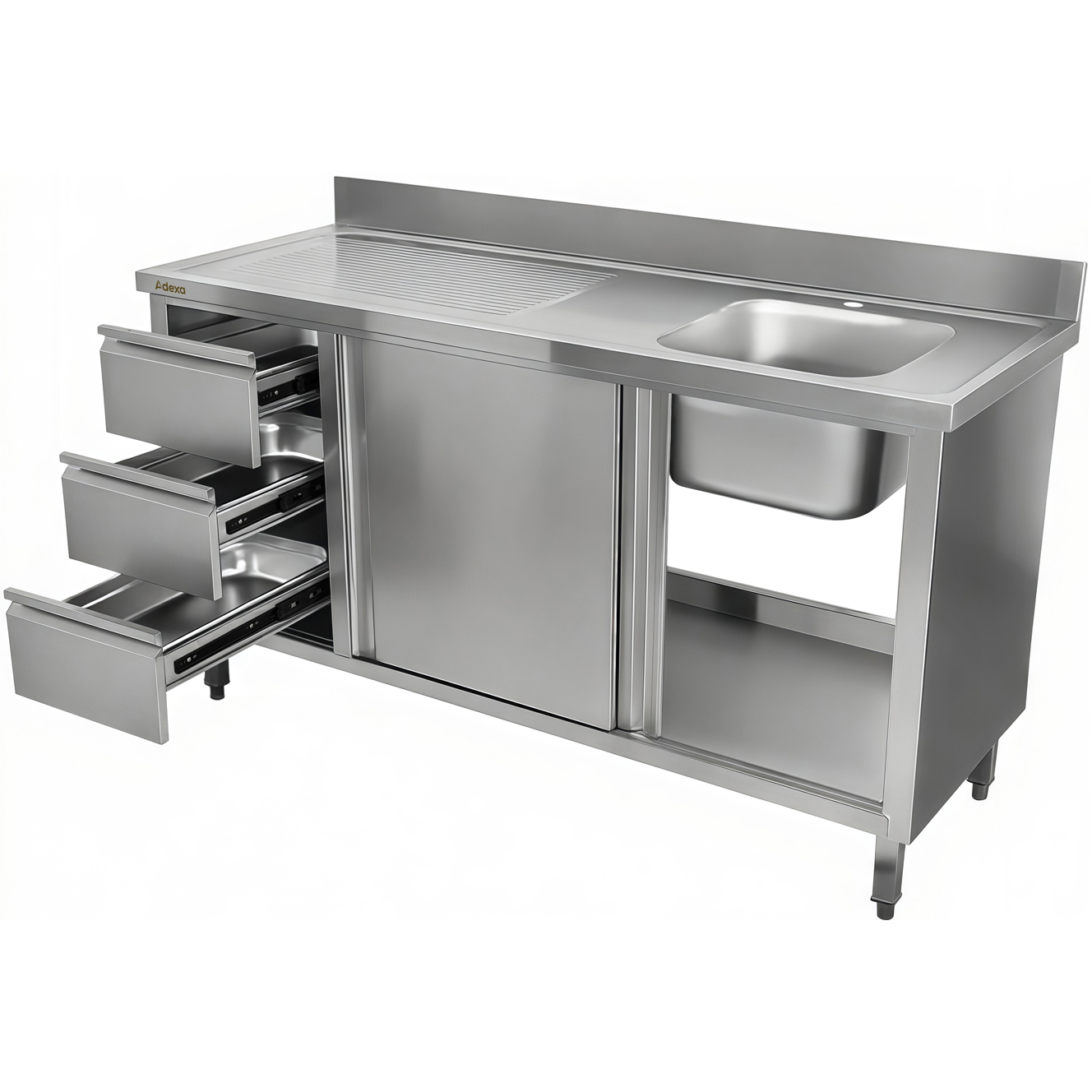Komerciālais izlietnes skapis no nerūsējošā tērauda 1000x600x900mm 1 bļoda pa labi 3 atvilktnes Aizsargsiena | Adexa DSA601002D3DR