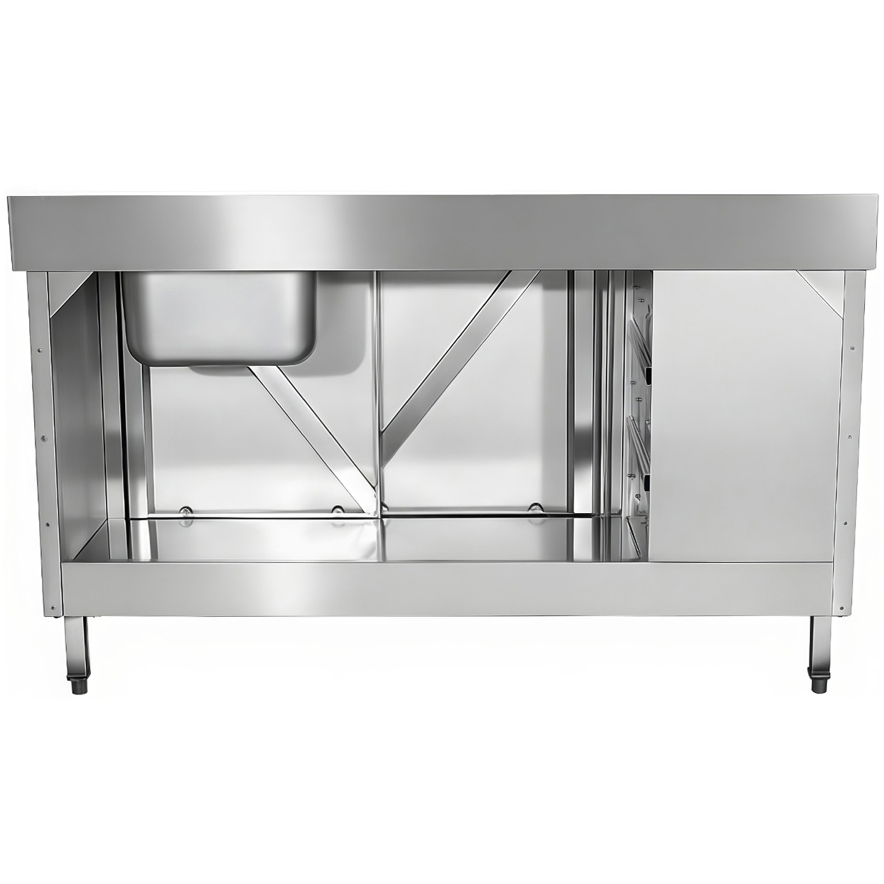 Original price was: 723,76 €.550,06 €Current price is: 550,06 €. (ei sis. KM) Komerciālais nerūsējošā tērauda izlietnes un uzglabāšanas bloks: Viena bļoda, 2 bīdāmās durvis un 3 atvilktnes. Maksimizējiet efektivitāti un organizāciju savā komerciālajā virtuvē ar šo augstas kvalitātes nerūsējošā tērauda izlietnes un uzglabāšanas kombināciju. Paredzēts optimālai telpas izmantošanai un higiēnai, šis bloks nevainojami integrē praktisku mazgāšanas staciju ar plašu, pieejamu uzglabāšanu. Galvenās iezīmes: Viena komerciālā izlietnes bļoda: Liela izmēra baseins nodrošina īpašu zonu efektīvai lielu katlu, pannu un piederumu mazgāšanai, skalošanai un mērcēšanai. Higiēniska nerūsējošā tērauda konstrukcija: Pilnībā izgatavots no izturīga, ēdināšanas kvalitātes nerūsējošā tērauda. Šis neporainais materiāls ir izturīgs pret koroziju, ļoti viegli tīrāms un atbilst stingriem higiēnas standartiem jebkurā profesionālā ēdināšanas vidē. Telpu taupošas bīdāmās durvis: Lielā skapja zona zem izlietnes ir nodrošināta ar divām gludi slīdošām bīdāmām durvīm. Šis dizains neprasa atvēršanas vietu, padarot to ideāli piemērotu šaurām, intensīvas satiksmes koridoriem un maksimizējot pieejamību lielapjoma uzglabāšanai (piemēram, ķimikālijas, atkritumu tvertnes vai tīrīšanas piederumi). Integrēta trīs atvilktņu vienība: Piedāvā trīs izturīgas, pilnībā izvelkamas atvilktnes blakus galvenajam skapim. Tās nodrošina nodalītu, bezputekļu uzglabāšanu mazākiem, būtiskiem priekšmetiem, piemēram, galda piederumiem, iepakojuma materiāliem, šefpavāra instrumentiem vai sagatavošanas piederumiem, turot tos viegli sasniedzamus. Aizsardzība pret šļakatām: Integrēta aizmugurējā aizsargsiena aizsargā sienas un apkārtējās virsmas no ūdens bojājumiem un ēdiena šļakatām, nodrošinot tīrāku, higiēniskāku darba vietu. Smagā darba virsma: Pastiprinātā darba virsma nodrošina izcilu izturību un stabilitāti, kalpojot gan kā sagatavošanas zona, gan kā īpaša drenāžas virsma blakus izlietnei. Regulējama stabilitāte: Augstuma regulējamas kājas ļauj perfekti izlīdzināt bloku uz nevienmērīgām grīdām, nodrošinot maksimālu stabilitāti lietošanas laikā. Ideāls viss vienā risinājums mazgāšanai un organizētai uzglabāšanai aizņemtās restorānos, kafejnīcās un ēdināšanas iestādēs. Lūdzu, skatiet sadaļu “Specifikācija” detalizētai informācijai. Ir noliktavā