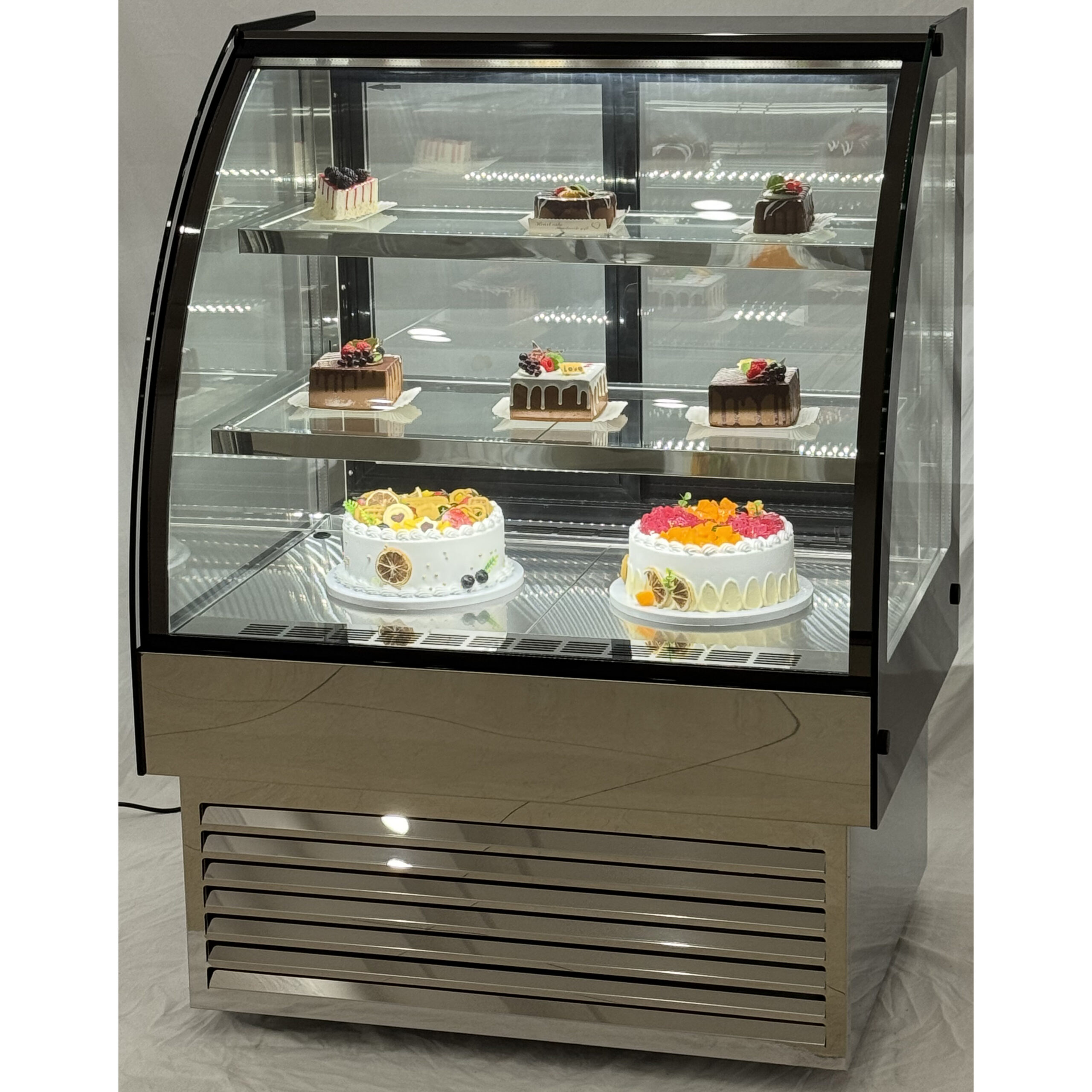 Komerciālais kūku letes noapaļots priekšgals 2 plaukti 900x700x1200mm Nerūsējošais tērauds un melns | Adexa HL900S2