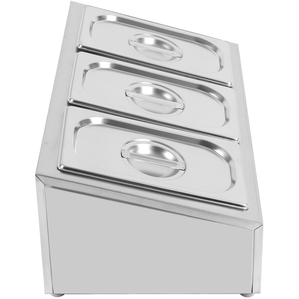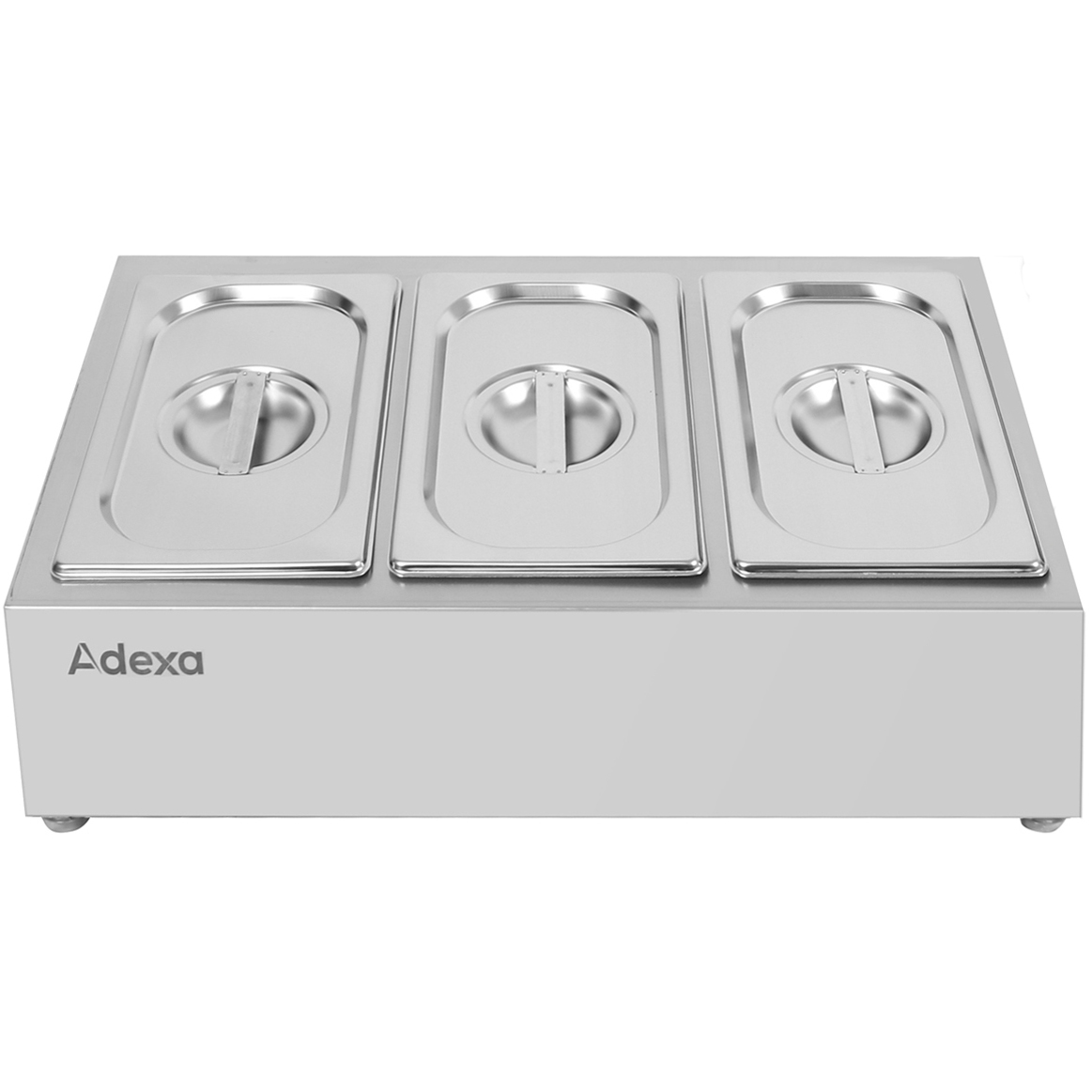 Komerciālais papildlīdzekļu turētājs, ieskaitot 3xGN1/4-100mm konteinerus ar vāku, nerūsējošs tērauds | Adexa CHE03A
