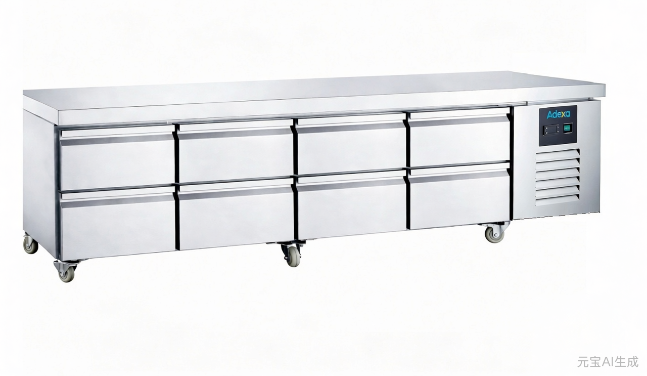 Komerciālais zema letes ledusskapis ar 8 atvilktnēm | Adexa DUGN4180TN