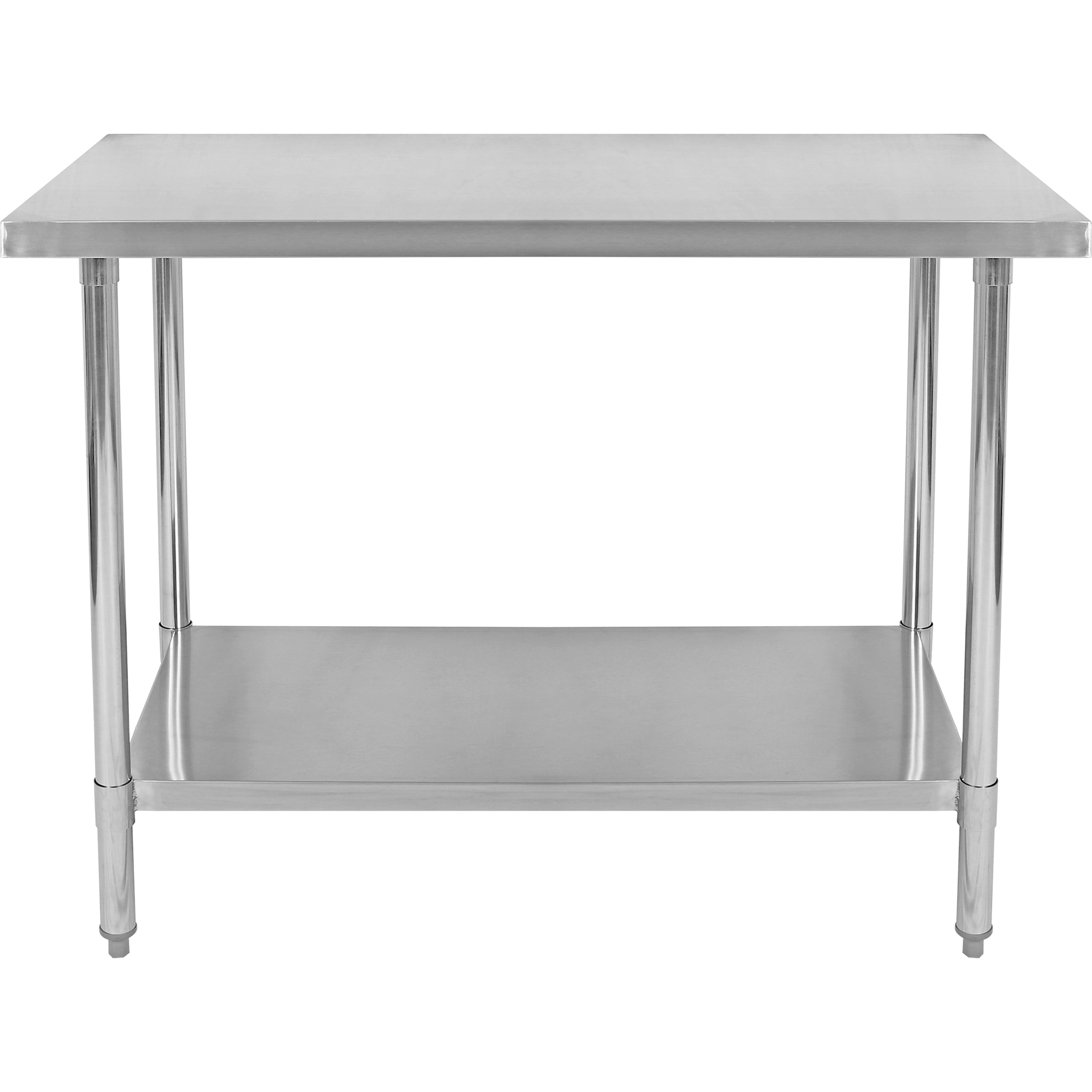 Original price was: 255,47 €.122,62 €Current price is: 122,62 €. (ei sis. KM) Šis ir lielisks cena-nauda darījums komerciālam darba galdam. Smagas slodzes, augstākās kvalitātes, 201 AISI nerūsējošā tērauda galds, kas atbilst augstajiem kvalitātes standartiem ēdināšanas un sabiedriskās ēdināšanas nozarē. Papildu panelis un uzvertas malas papildu aizsardzībai. Atbilst starptautiskajiem higiēnas un tīrības standartiem. Izgatavots no nerūsējošā tērauda ar Scotch Brite apdari, lai atbilstu augstākajiem higiēnas standartiem. Pastiprināts galda virsma Galda virsma izgatavota no divkāršas sienas nerūsējošā tērauda. Kravnesība līdz 500 kg. Īpaši augsta nestspēja. Sīkāku informāciju skatiet sadaļā ‘Specifikācija’. Ir noliktavā