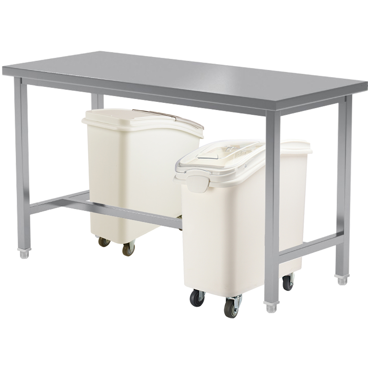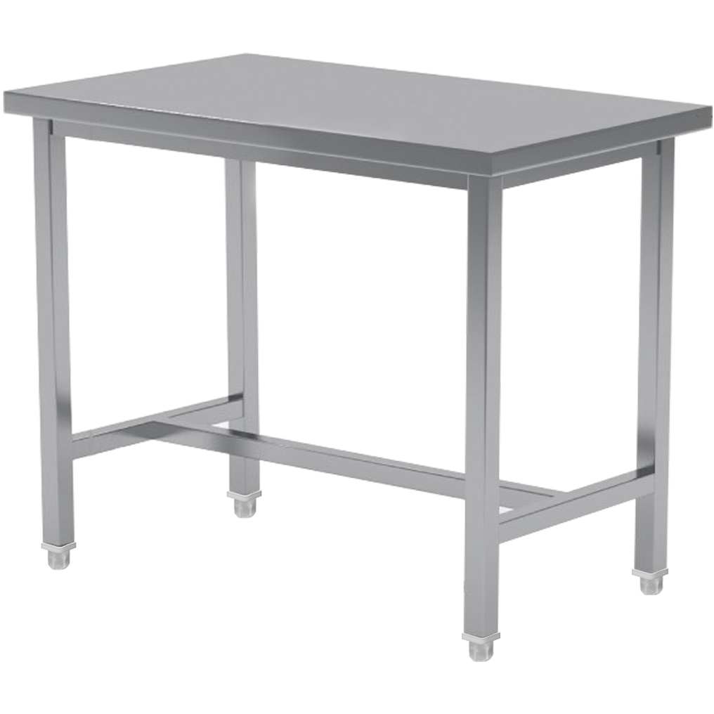 Original price was: 291,69 €.169,18 €Current price is: 169,18 €. (ei sis. KM) Šis ir izcils cenas un kvalitātes attiecības komerciālais darba galds. Smags pienākums, augstākās kvalitātes 201 AISI nerūsējošā tērauda galds, kas atbilst pārtikas servisa un ēdināšanas industrijas augstiem kvalitātes standartiem. Apakšējā panelis un uzgriezti malas nodrošina papildu aizsardzību. Atbilstošs starptautiskiem higiēnas un tīrības standartiem. Konstruēts nerūsējošā tēraudā ar Scotch Brite apdari, lai atbilstu augstākajiem higiēnas standartiem. Pastiprināta darba virsma, kas izgatavota no divsienu nerūsējošā tērauda. Nesošā spēja līdz 500 kg. Ļoti augsta nesošā spēja. Lūdzu, skatiet sadaļā “Specifikācija”, lai iegūtu detalizētu informāciju. Ir noliktavā