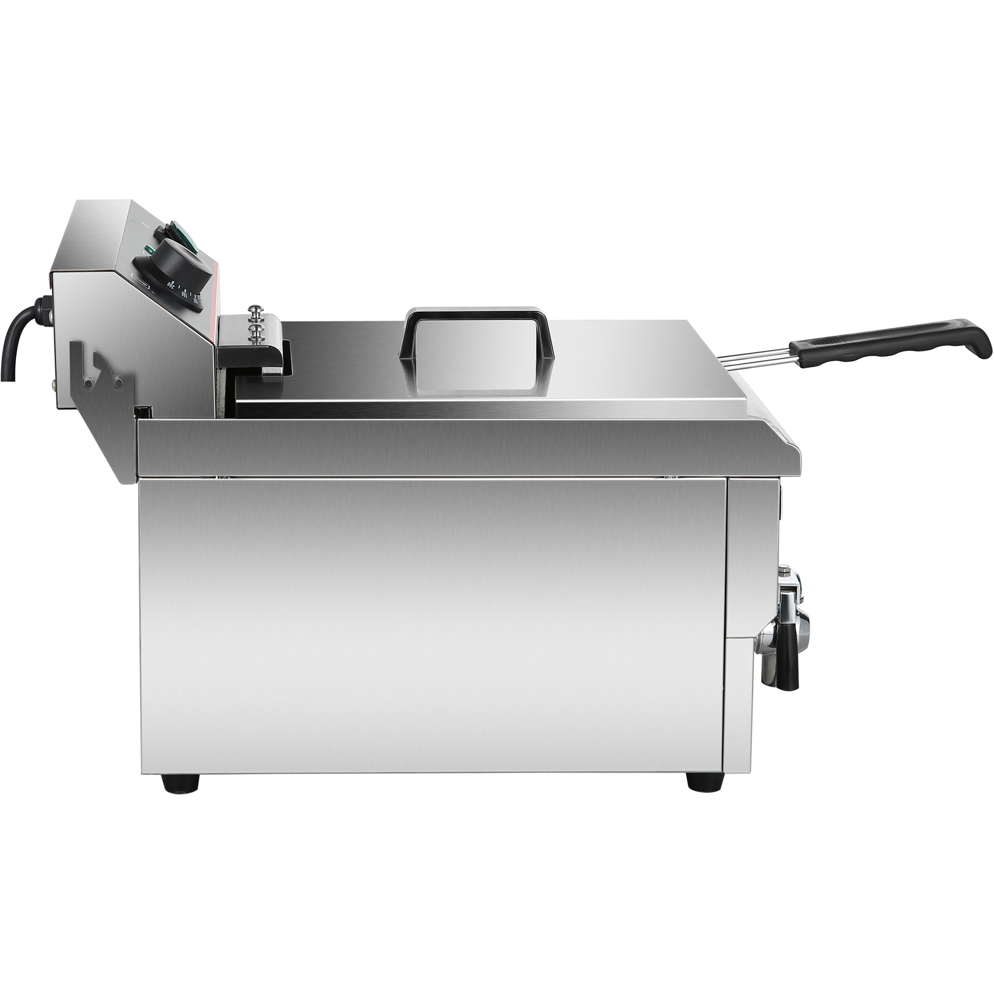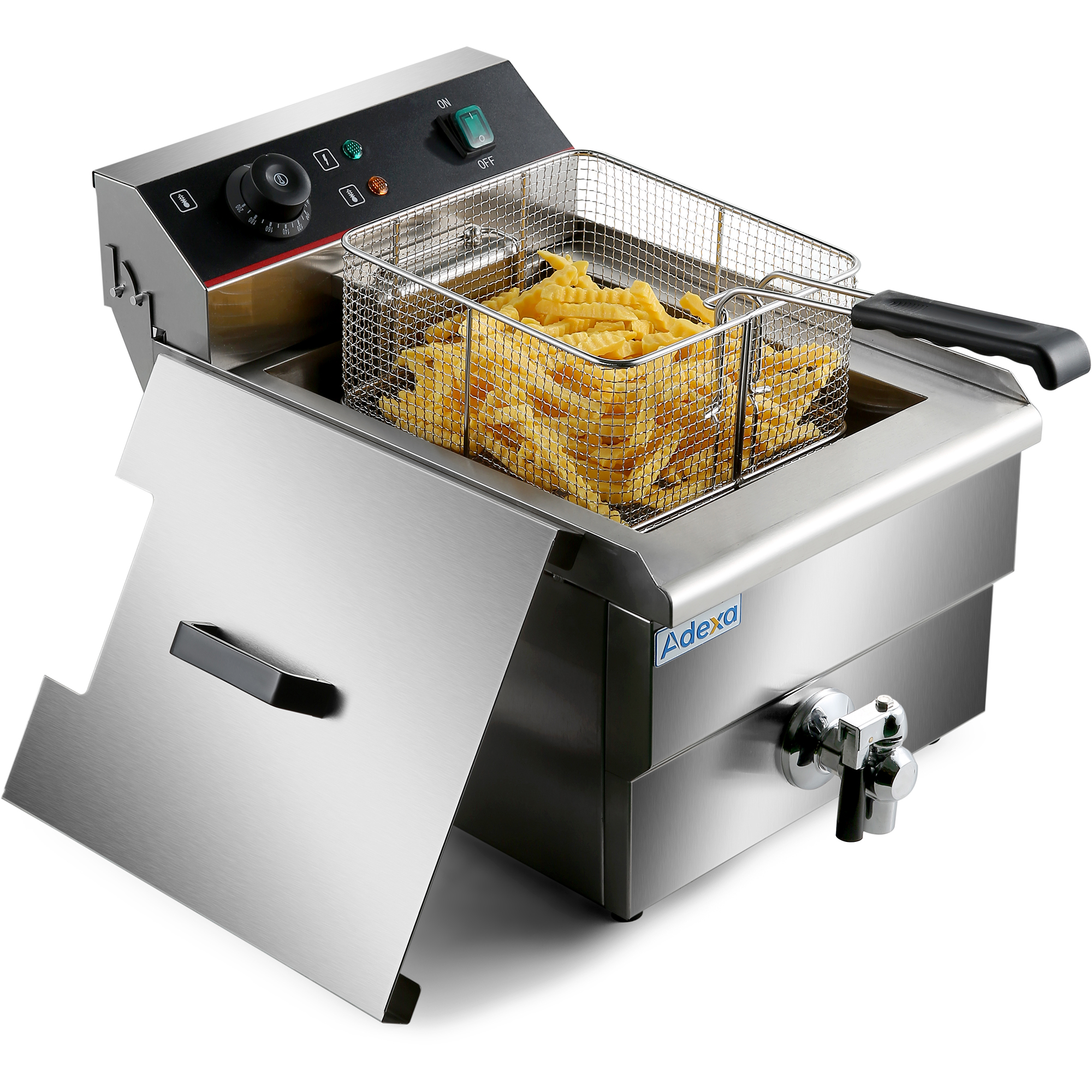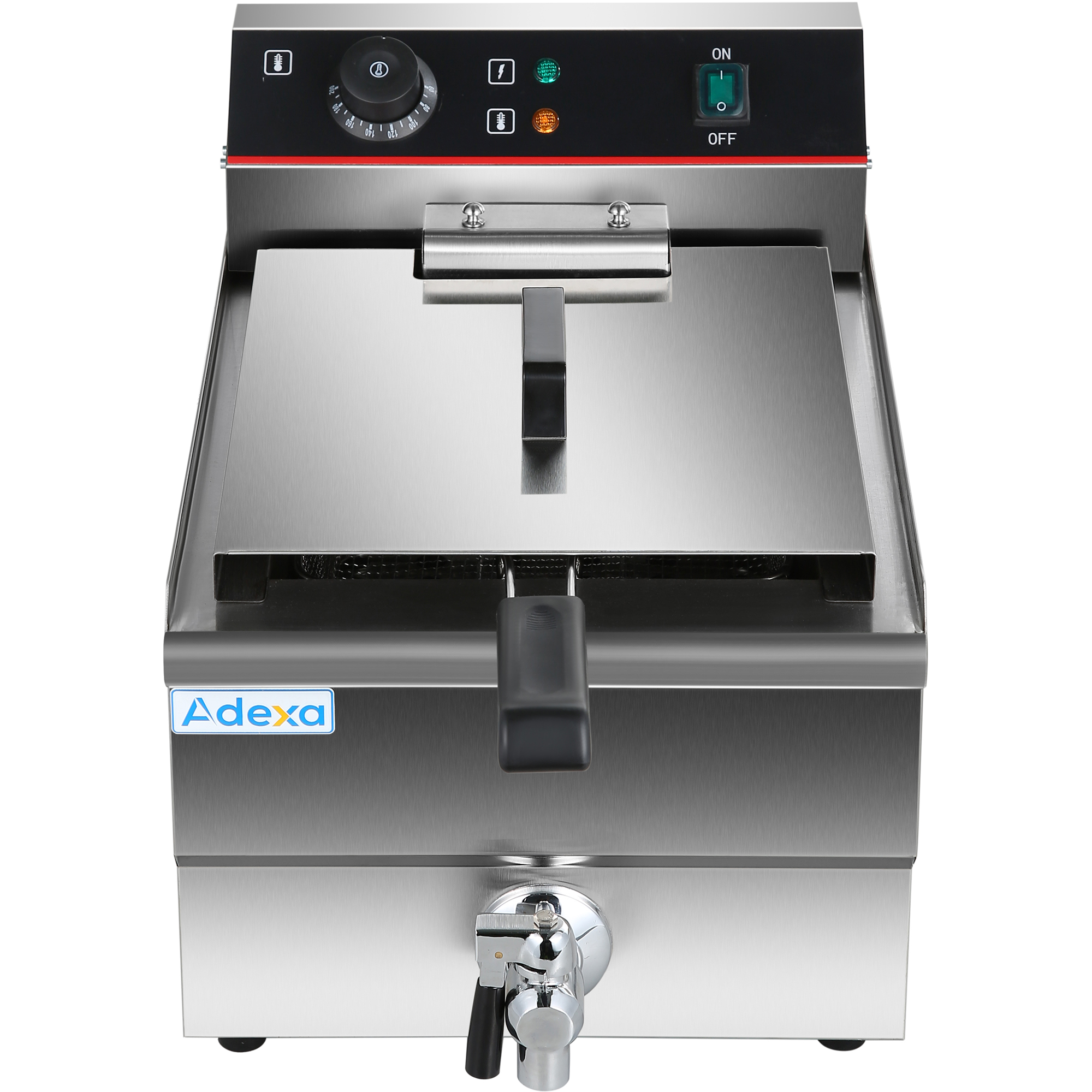 Komerciāls fritieris ar vienu elektrisko 10 litru 3kW darba virsmas novadīšanas krānu | Adexa HEF101V