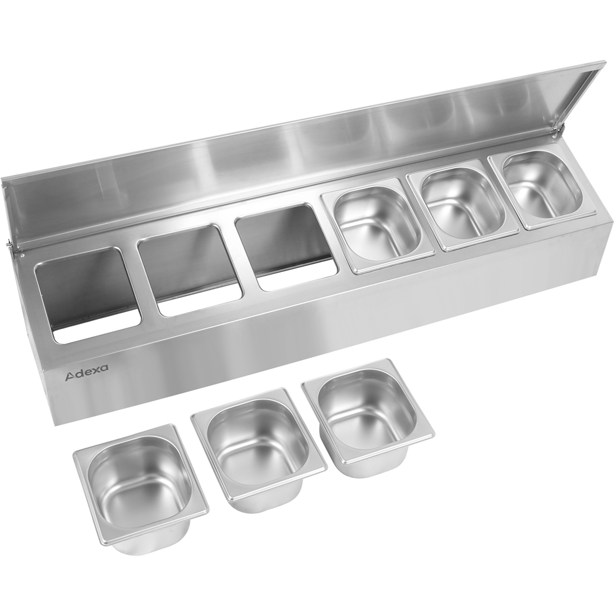 Komerciāls garšvielu turētājs ar vāku, ietverot 6xGN1/6-100mm konteinerus Nerūsējošais tērauds | Adexa CHD06AFL