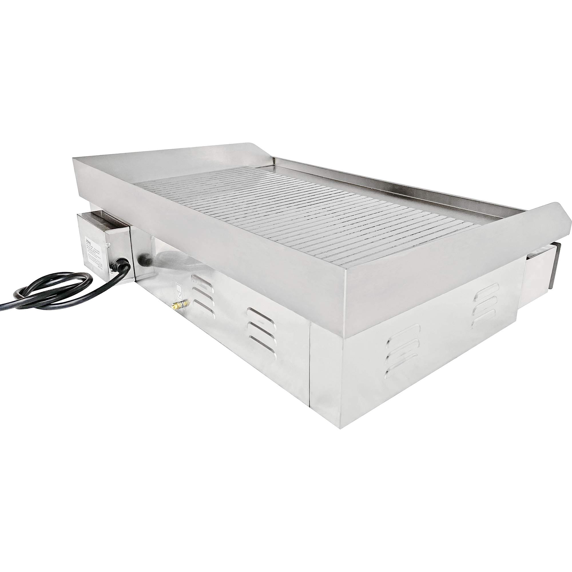Original price was: 370,14 €.236,89 €Current price is: 236,89 €. (ei sis. KM) Šī lielā elektriskā galda virsmas pannas ir paredzēta maksimālam ātrumam un daudzpusībai. Divas neatkarīgi kontrolētas apsildes zonas ļauj jums ideāli pagatavot dažādus produktus. Iestatiet vienu sadaļu uz augstas temperatūras hamburgeriem, vistas gaļai vai bekonam, bet otru uz zemas temperatūras grauzdētiem maizes rullīšiem vai olām. Tas novērš viena produkta sadedzināšanu, kamēr citi vēl gatavojas. Ar šo komerciālo elektrisko cepamo virsmu jūs varat ātri pagatavot dažādas no jūsu populārākajām ēdienkartes piedāvājumiem! Neatkarīgi no tā, vai jūs gatavojat pankūkas, burgerus, ceptus siera rullīšus vai krustotas olas, šī izturīgā nerūsējošā tērauda pannas nodrošina nepieciešamo izturību un veiktspēju, lai paveiktu darbu. Biezā tērauda cepamā virsma vienmērīgi sasilst visā cepšanas laikā, nodrošinot vienmērīgus gatavošanas rezultātus, neatkarīgi no tā, kur novietojat ēdienu uz pannas virsmas. Grīdlīša plates priekšpusē esošs kanāls savāc taukus un novirza tos uz izņemamu tauku paplāti. Kad ir laiks sakopt, paplāte var tikt ātri noņemta un iztukšota. Lūdzu, skatiet sadaļu “Specifikācija”, lai iegūtu detalizētu informāciju. Ir noliktavā