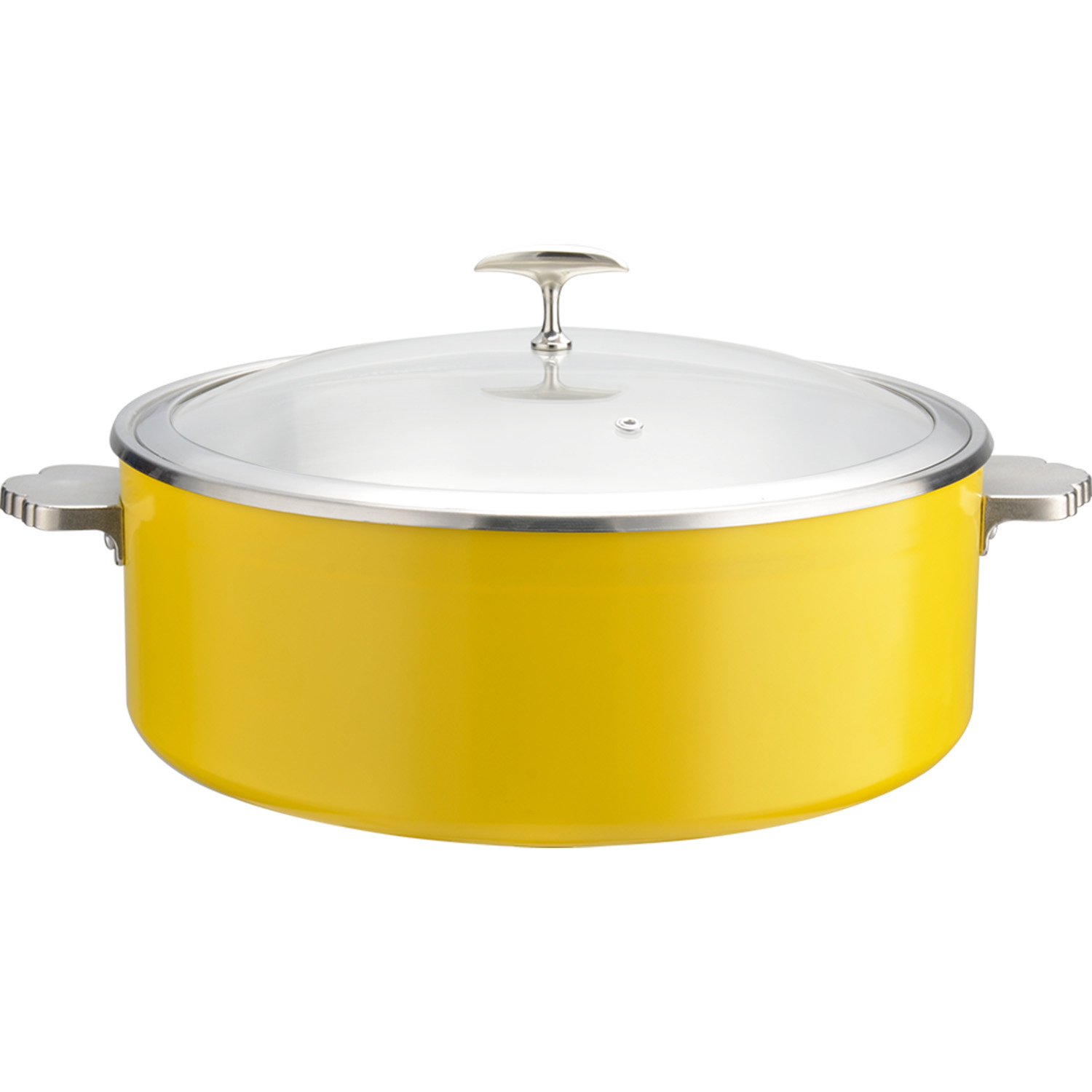 Pasniegšanas un sildīšanas katls ar stikla vāku un keramikas ieliktni, trīsslāņu krāsots pārklājums ⌀320x120mm Dzeltens | Adexa E0912005M