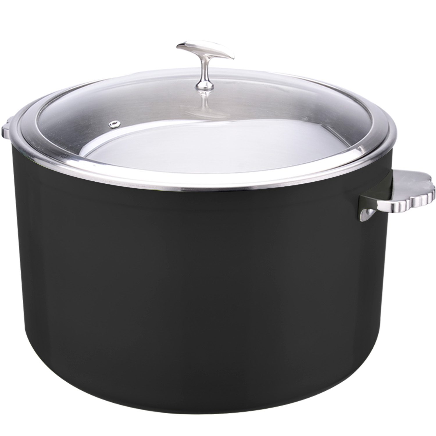 Pasniegšanas un sildīšanas katls ar stikla vāku un nerūsējošā tērauda ieliktni Trīsslāņu krāsots pārklājums ⌀320x210mm Melns | Adexa E0912086