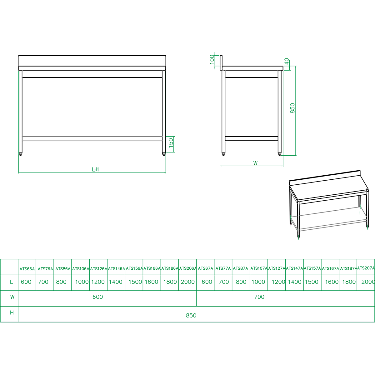 Original price was: 325,28 €.126,86 €Current price is: 126,86 €. (ei sis. KM) Šis ir izcils komerciālais darba galds ar augstu vērtību par naudu. Izturīgs, augstas kvalitātes 201 AISI nerūsējošā tērauda galds, kas atbilst ēdināšanas un sabiedriskā ēdināšanas nozares augstajiem kvalitātes standartiem. Kvadrātveida kājas, 40×40 mm no 201 AISI nerūsējošā tērauda un regulējamas kājas. Apakšējais panelis un uzliektas malas papildu aizsardzībai. Atbilst starptautiskajiem higiēnas un tīrīšanas standartiem. Izgatavots no nerūsējošā tērauda ar Scotch Brite apdari, lai atbilstu augstākajiem higiēnas standartiem. Pastiprināta darba virsma 60 mm darba virsma Darba virsma izgatavota no divsienu nerūsējošā tērauda. Pārnēsāšanas kapacitāte līdz 500 kg. Ļoti augsta nesēja kapacitāte. Detalizētu informāciju skatīt sadaļā “Specifikācija”. Ir noliktavā