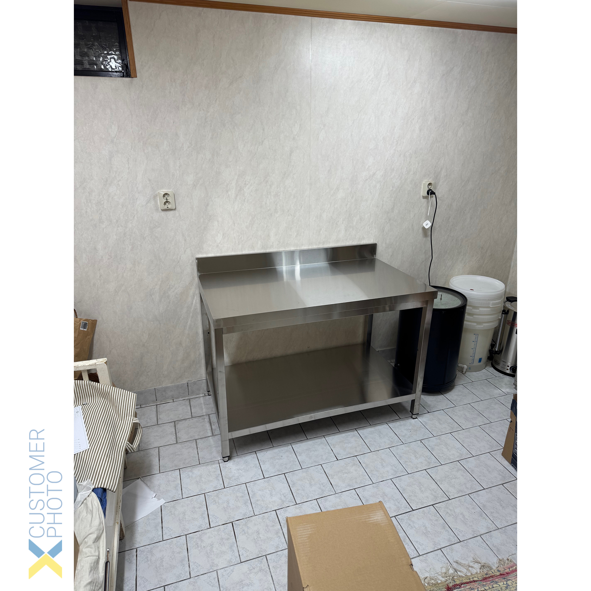 Original price was: 375,95 €.169,18 €Current price is: 169,18 €. (ei sis. KM) Šis ir lielisks cenas un kvalitātes attiecības komerciāls darba galds. Smagas slodzes, augstas kvalitātes 201 AISI nerūsējošā tērauda galds, kas atbilst pārtikas servisa un ēdināšanas nozares augstajiem kvalitātes standartiem. Kvadrātveida kājas, 40×40 mm no 201 AISI nerūsējošā tērauda un regulējamas kājiņas. Apakšējais paneļa un uzlocītās malas papildu aizsardzībai. Atbilst starptautiskajiem higiēnas un tīrības standartiem. Izgatavots no nerūsējošā tērauda ar Scotch Brite apdari, lai atbilstu augstākajiem higiēnas standartiem. Pastiprināts darba virsma 60 mm darba virsma. Darba virsma izgatavota no dubultsienu nerūsējošā tērauda. Celtspēja līdz 500 kg. Ļoti augsta nestspēja. Lūdzu, skatiet sadaļā ‘Specifikācija’ sīkākai informācijai. Ir noliktavā