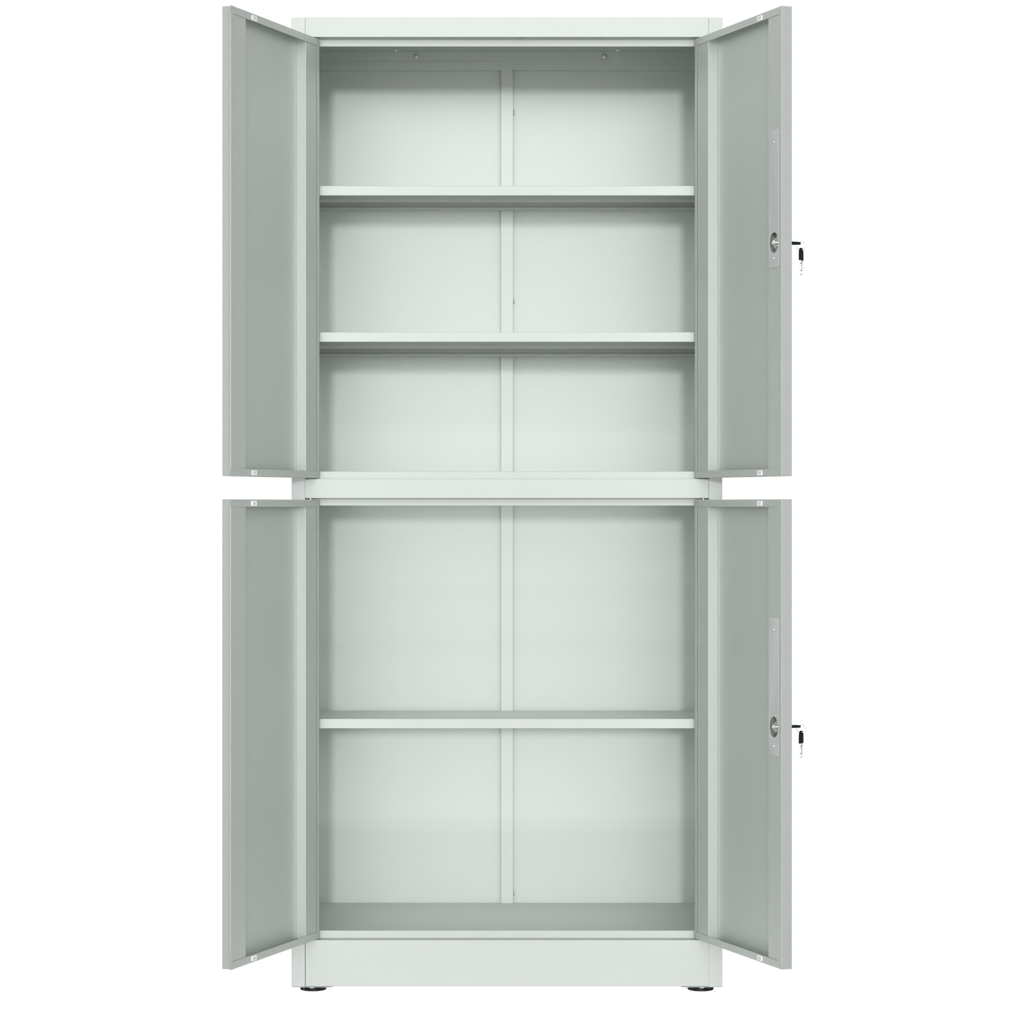 Profesionālais metāla uzglabāšanas skapis 4 veramās durvis 900x400x1800mm slēdzene 3 regulējamas plaukti gaiši pelēks | Adexa SEFC2LG