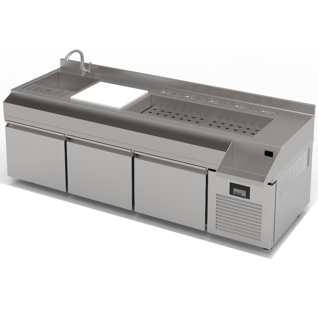 Profesionāls bāra ledusskapis 580 L – 3 atvilktnes – nerūsējošais tērauds ar kokteiļu vienību | Adexa TPG73L3DCT207