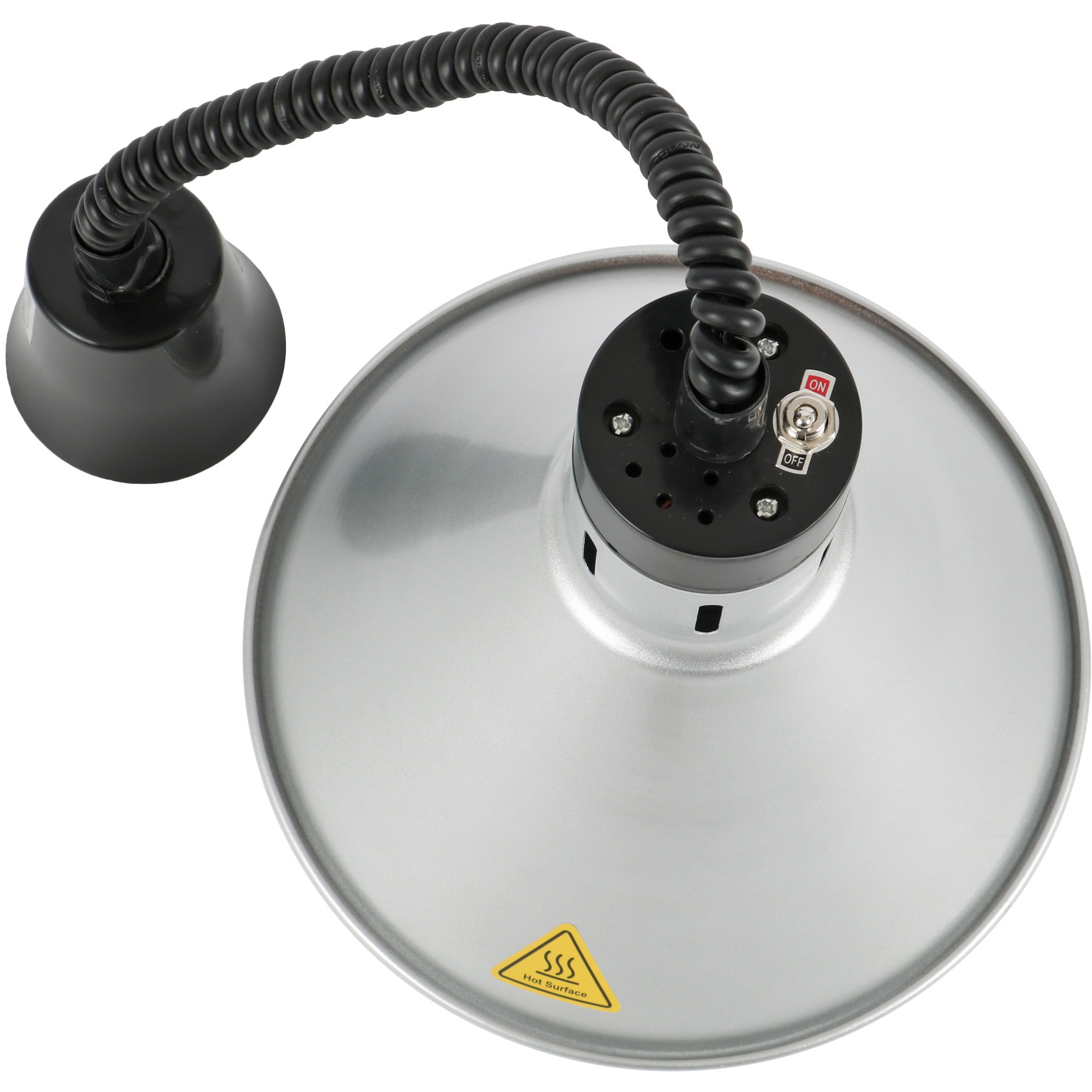 Original price was: 85,89 €.50,68 €Current price is: 50,68 €. (ei sis. KM) Šī griestu montējama komerciāla siltuma lampa ar ievelkamu vadu sudrabā ir uzticams un stilīgs risinājums ēdiena karstai uzturēšanai. Ideāli piemērota izmantošanai apkalpošanā vai pašapkalpošanās bufetes zonās. Lampu var viegli pielāgot, lai ēdiens paliktu pievilcīgs un ideālā pasniegšanas temperatūrā. Diametrs: 270 mm. Vada diapazons: 600 līdz 1500 mm. Lampas jauda: 250W Ir noliktavā